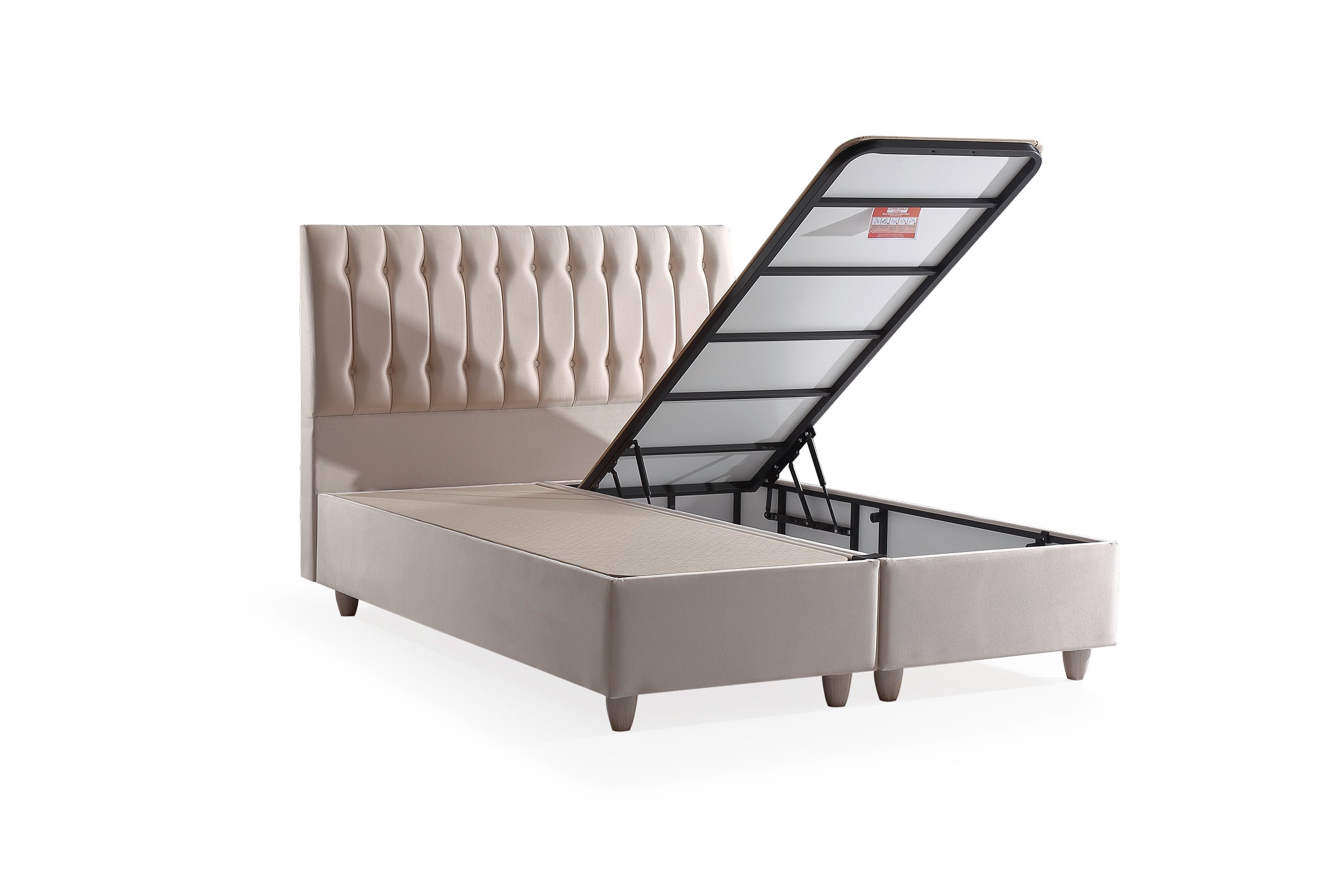 Dieses stilvolle Bett kombiniert zeitlose Eleganz mit hoher Funktionalität. Das gepolsterte Kopfteil mit vertikaler Steppung verleiht dem Design eine luxuriöse Optik und sorgt für ein angenehmes Anlehnen. Die hochwertige Matratze mit ergonomischer Unterstützung passt sich optimal dem Körper an und gewährleistet einen erholsamen Schlaf. Ein großzügiger Bettkasten bietet zusätzlichen Stauraum für Bettwäsche, Decken und mehr, während das leichtgängige Öffnungssystem eine mühelose Handhabung ermöglicht. Der strapazierfähige Stoffbezug ist nicht nur angenehm weich, sondern auch pflegeleicht und langlebig. Die stilvollen Holzfüße runden das Design perfekt ab und sorgen für Stabilität. Ideal für alle, die Wert auf Ästhetik und praktischen Komfort legen.