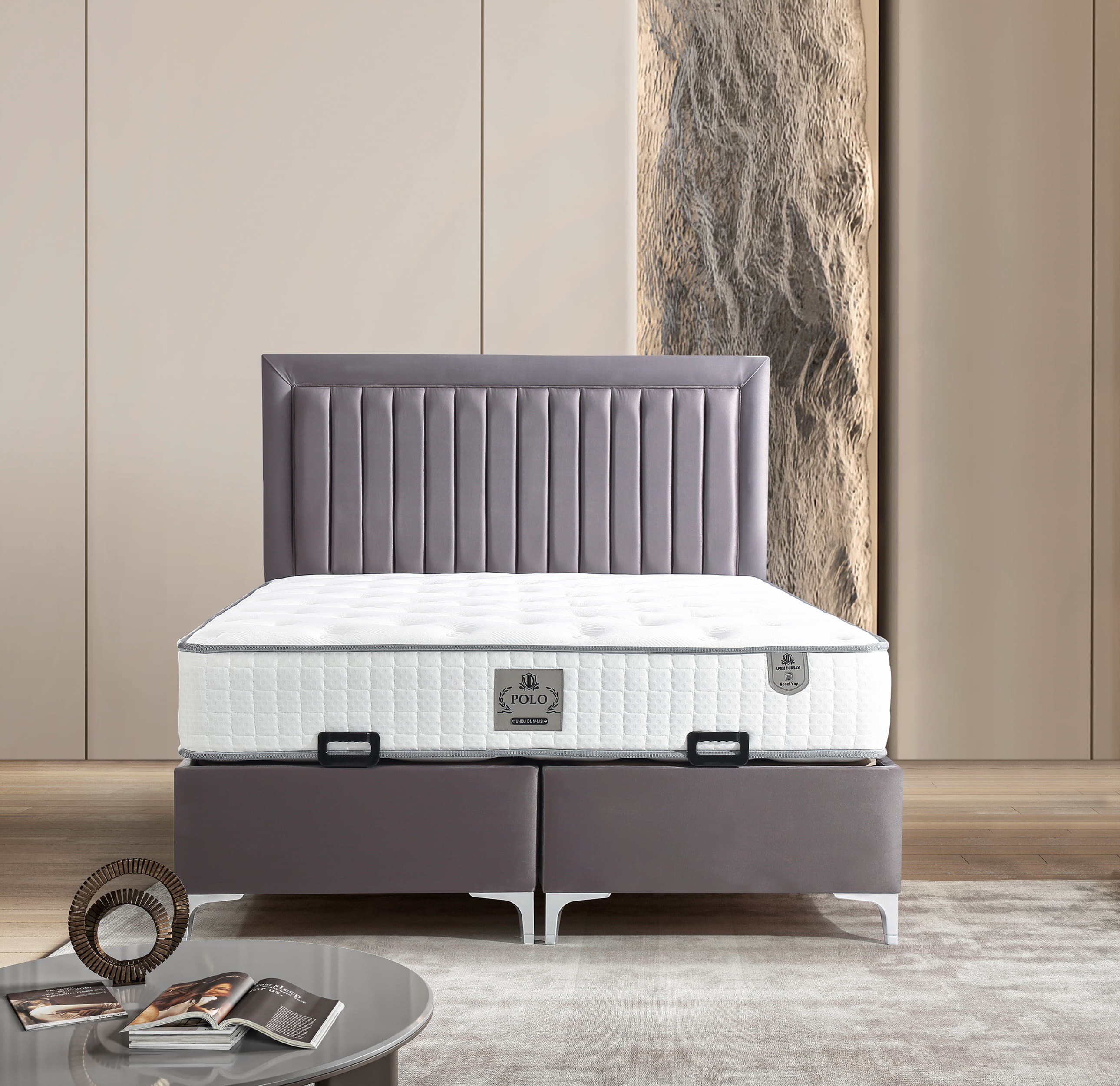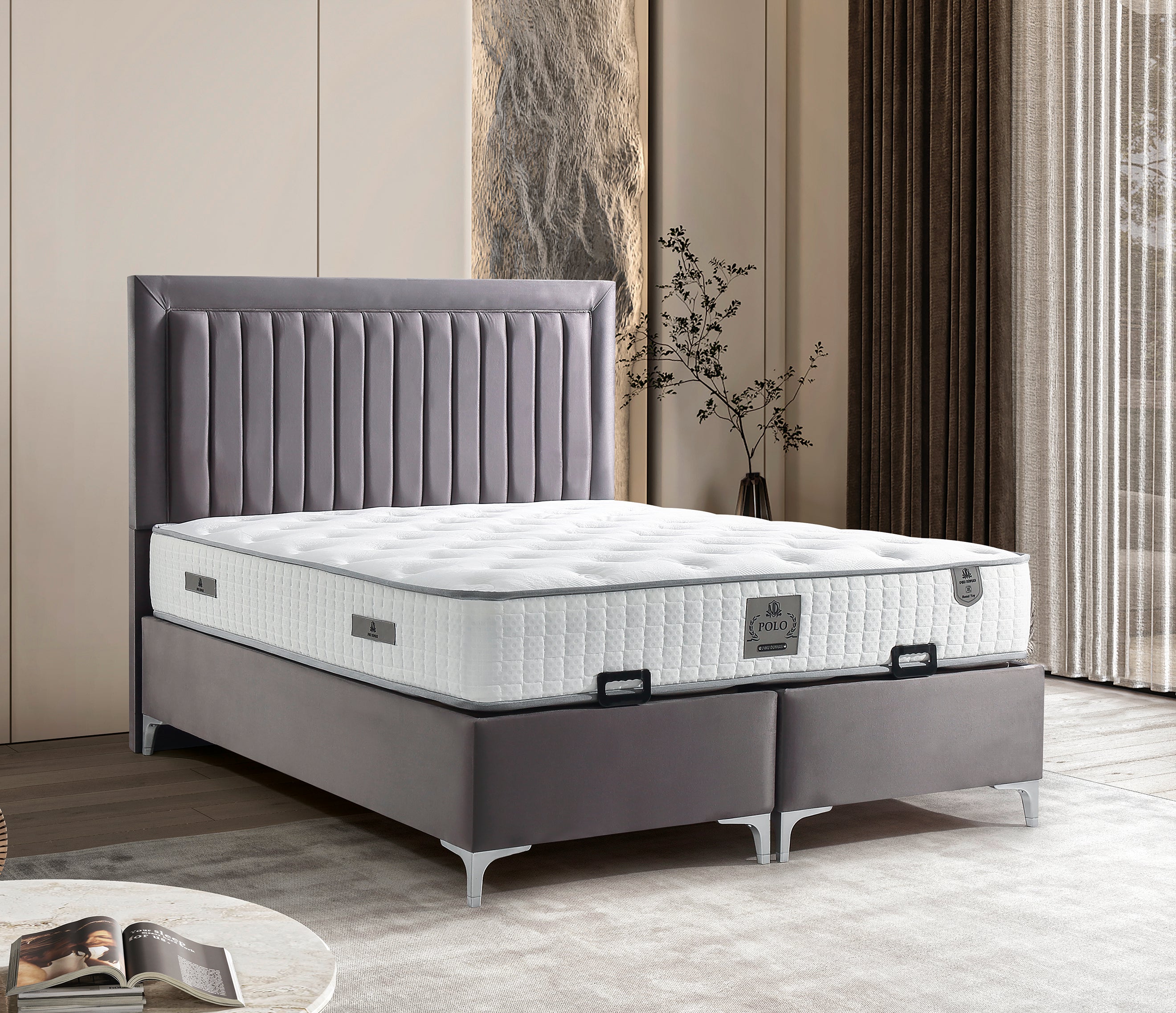 Das POLO Bett mit Bettkasten in Strong Grau vereint modernes Design mit funktionalem Stauraum. Das elegante, gesteppte Kopfteil verleiht dem Bett eine luxuriöse Ausstrahlung und sorgt für eine stilvolle Atmosphäre im Schlafzimmer. Der großzügige Bettkasten bietet reichlich Platz für Bettwäsche, Kissen oder saisonale Textilien und lässt sich dank des leichtgängigen Mechanismus mühelos öffnen. Die ergonomische Federkernmatratze sorgt für optimalen Liegekomfort und unterstützt einen erholsamen Schlaf. Der hochwertige Veloursstoff in Strong Grau ist langlebig, pflegeleicht und verleiht dem Bett eine edle Optik. Das POLO Bett mit Bettkasten ist in verschiedenen Varianten erhältlich – von Größenoptionen bis zu Matratzenarten und Kopfteilvarianten, sodass es perfekt auf individuelle Bedürfnisse abgestimmt werden kann.