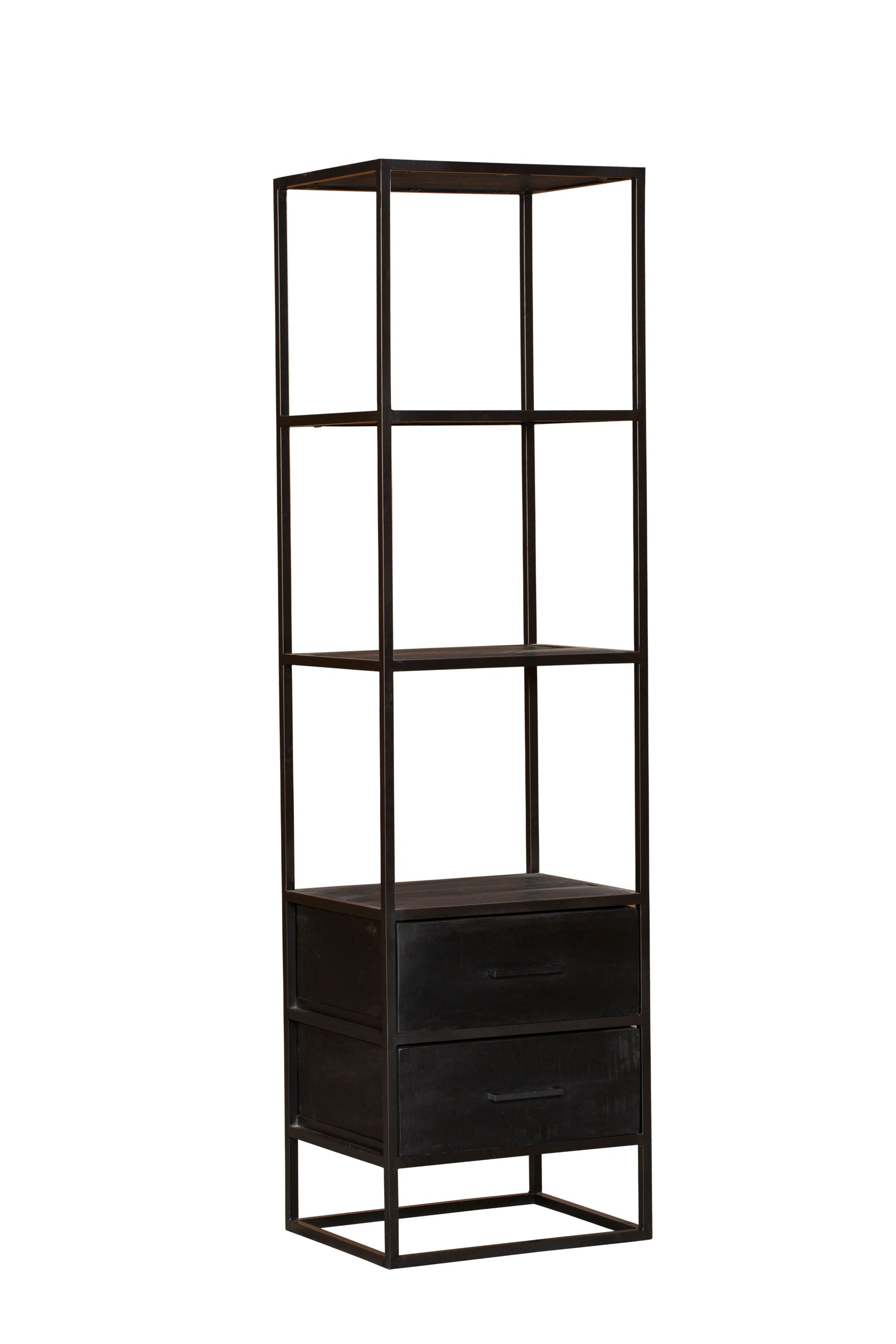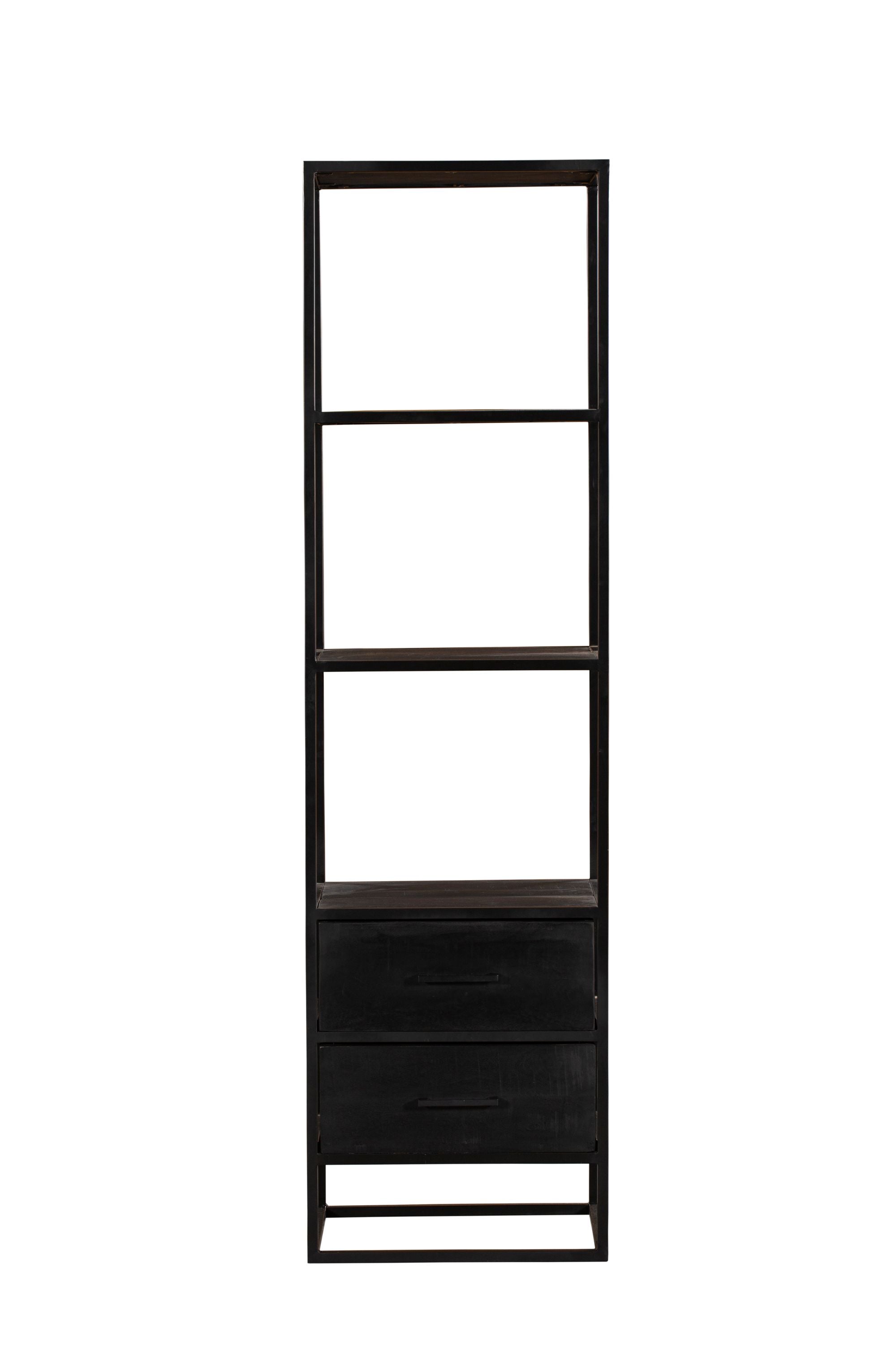 Bücherregal Devereux Black | Mangoholz und Stahl | 2 Schubladen