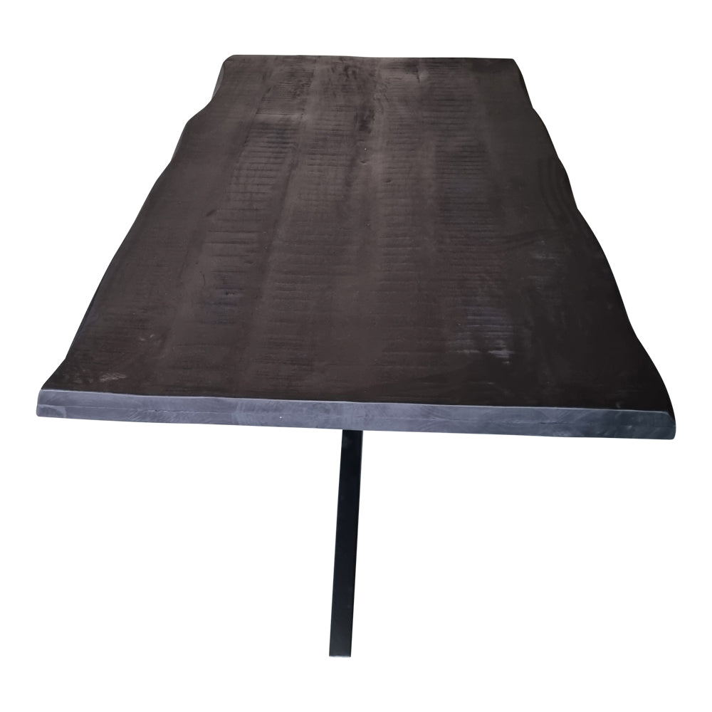Der Baumstammtisch Hamilton Black besteht aus Mangoholz und Metall. Die Tischplatte ist aus verschiedenen Mangoholzstreifen gefertigt, wodurch kein Tisch identisch ist. Die Platte ist mattschwarz lackiert.Abmessungen Breite: 300/240/220/200/180/160 cm Tiefe: 100 cm Höhe: 76 cm Dicke der Platte: 6 cm, verdicktAbmessungen Matrix Bein Breite: 10 cm Tiefe: 5 cmPflege: mit einem leicht feuchten Tuch abwischen.