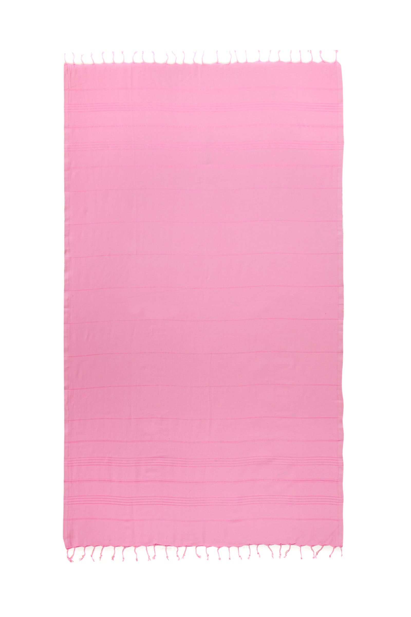 Villa XL Strandtuch, Hamamtuch, Saunatuch, Yogatuch, Unifarbe, 100% Baumwolle , Saunatuch Yogatuch, für Babys geeignet. Pestemal – Das vielseitige Hamam-Tuch aus 100 % Baumwolle Ein Pestemal ist ein traditionelles türkisches Hamam-Tuch, das durch seine praktischen Eigenschaften vielseitig verwendet werden kann. Es lässt sich überall leicht verstauen und benötigt nur ein Viertel des Platzes eines klassischen Frottee-Handtuchs. Hergestellt aus 100 % Baumwolle, eignet es sich auch hervorragend für Säuglinge und Babys. Produkteigenschaften: Farbe: Pink Größe: 100 x 180 cm Gewicht: 265 g Material: 100 % Baumwolle, doppelseitig Jacquard gewebt PRAKTISCH Verwendbar als Badetuch, Strandtuch, Hamamtuch, Saunatuch, Handtuch, Fouta oder klassisches Pestemal – ideal für Strand, Pool, Fitness, Hammam, Sauna, Yoga, Sport, Camping und Picknick. SAUGFÄHIG & ULTRAWEICH Trocknet schnell, ist extrem weich und besonders geeignet für Babys, Kleinkinder sowie Erwachsene mit empfindlicher Haut. Kein Pilling! LEICHT & KOMPAKT Passt in jede Tasche, lässt sich einfach zusammenrollen und spart Platz – ideal auf Reisen. PFLEGELEICHT Maschinenwaschbar bei 30 °C, trocknet deutlich schneller als herkömmliche Frotteehandtücher. Wird mit jeder Wäsche weicher und saugfähiger. NACHHALTIG & SICHER Aus naturgefärbter, reiner Baumwolle – frei von schädlichen Stoffen oder Chemikalien, .