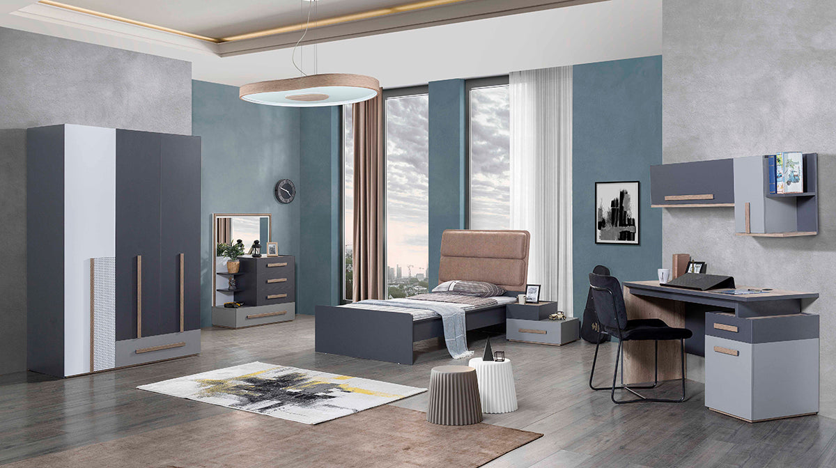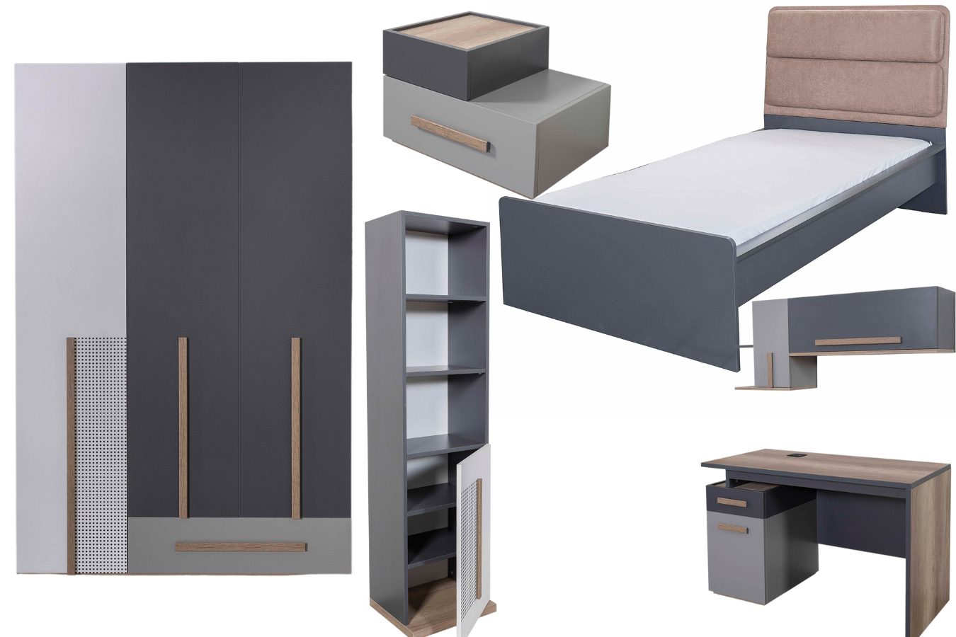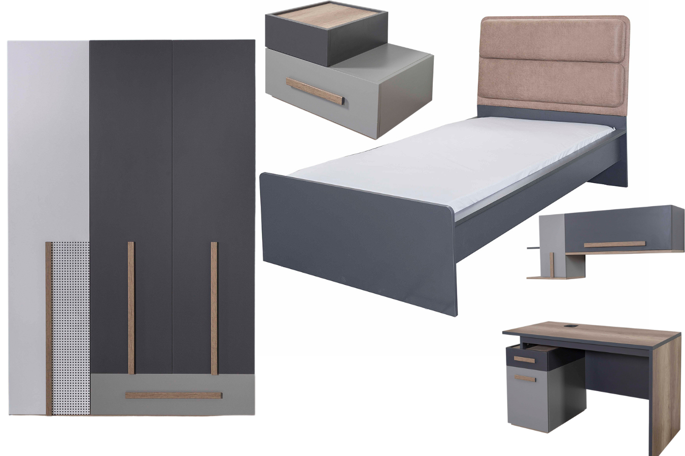 L Set besteht aus: Bett 100x200-Nachttisch-3 trg. Kleiderschrank -Schreibtisch