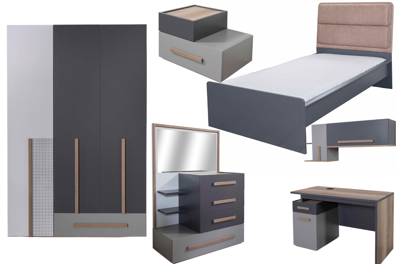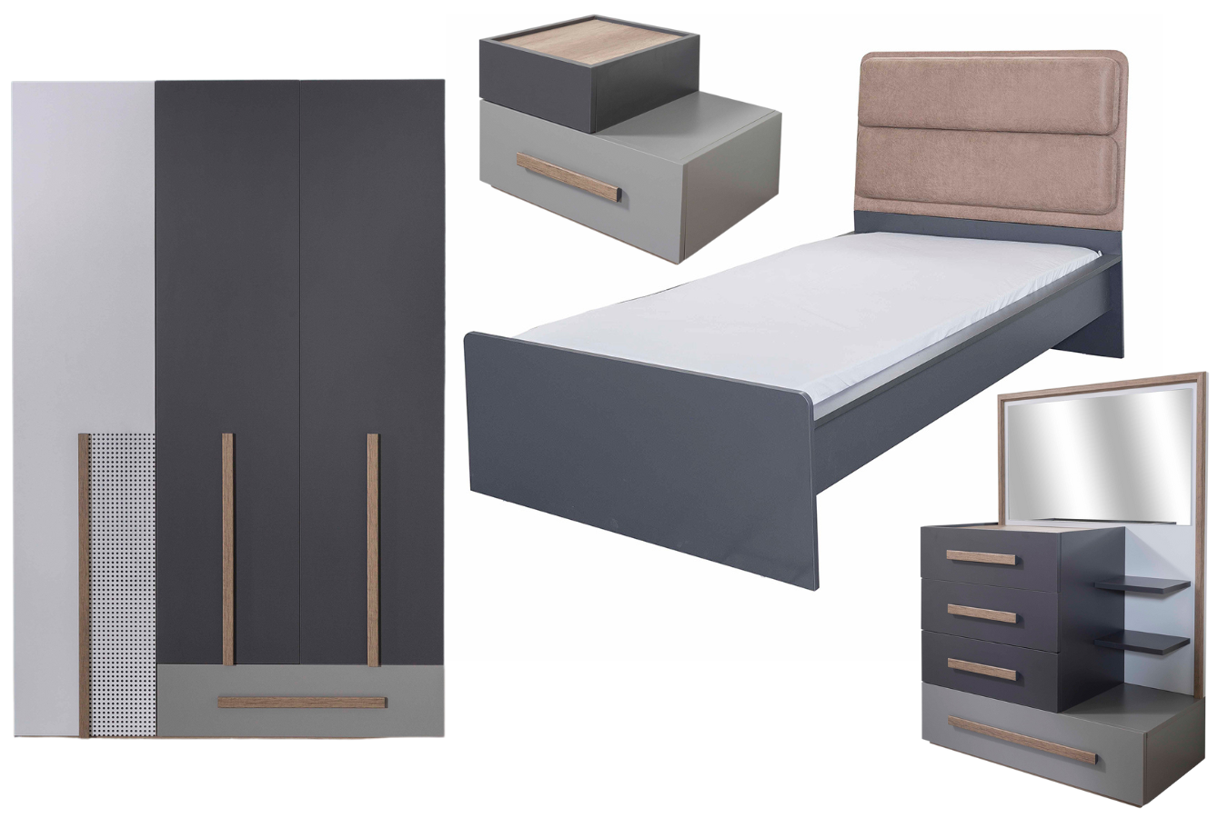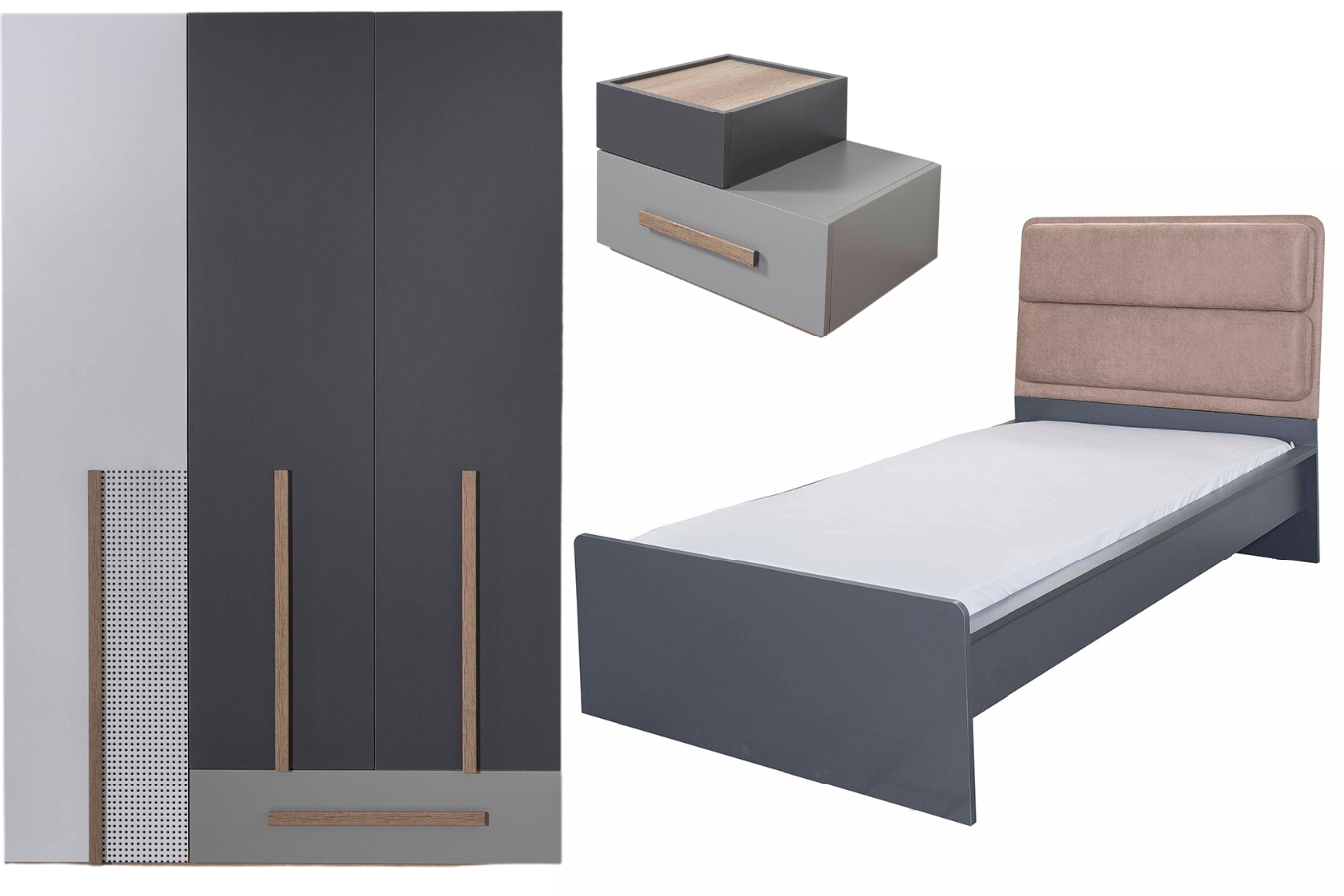 M Set besteht aus: Bett 100x200-Nachttisch-3 trg. Kleiderschrank