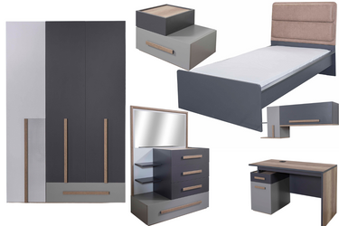 L-B Set besteht aus: Bett 100x200-Nachttisch-Schreibtisch-Kommode