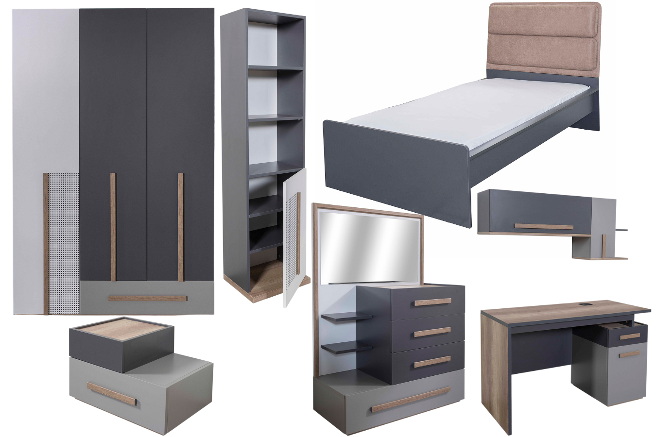 XXL Set besteht aus: Bett 100x200-Nachttisch-3 trg. Kleiderschrank -Schreibtisch-Kommode-Bücherschrank