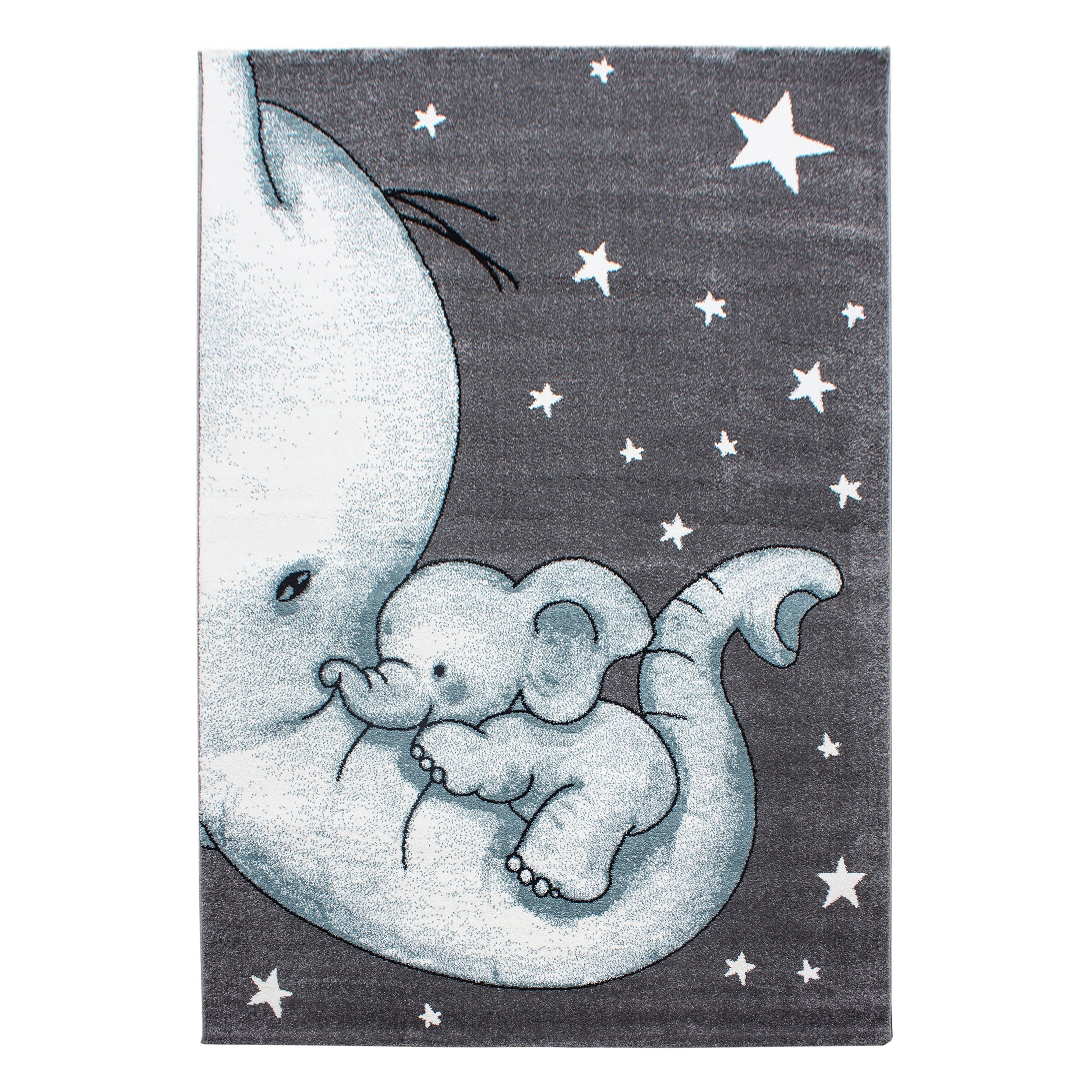 Der Kinderteppich Kidaro in Blau mit einem niedlichen Elefant-Design bringt fröhliche Farben und eine verspielte Atmosphäre in das Kinderzimmer, Spielzimmer oder Babyzimmer. Aus hochwertigem Polypropylen gefertigt und maschinell gewebt, bietet der Teppich eine weiche, strapazierfähige und pflegeleichte Oberfläche. Das lustige Elefant-Design lässt Kinderträume wahr werden und schafft einen gemütlichen Spielbereich. Der Teppich schützt Ihre Böden und sorgt für zusätzlichen Komfort. Reinigung erfolgt bequem per Handwäsche.