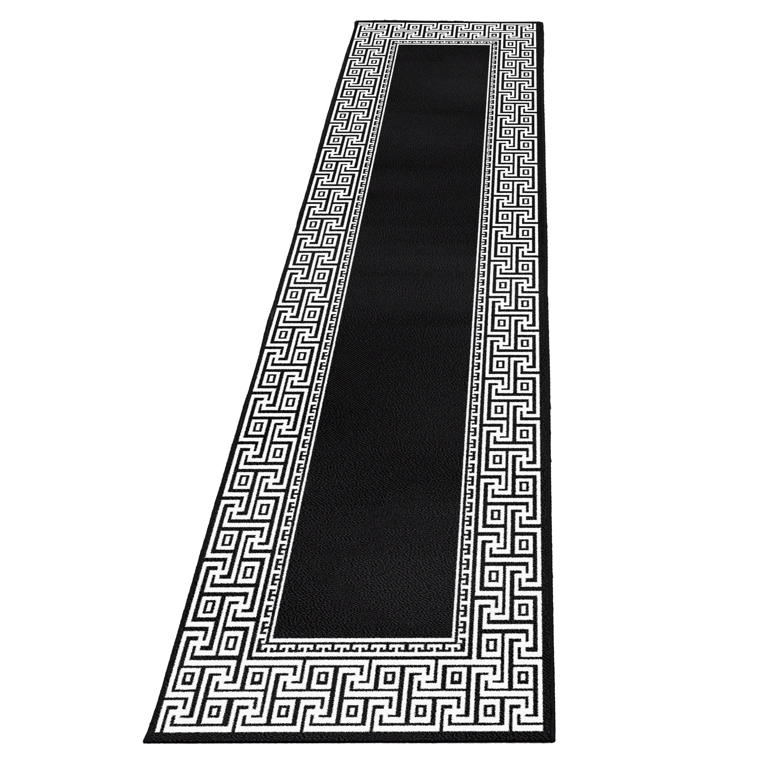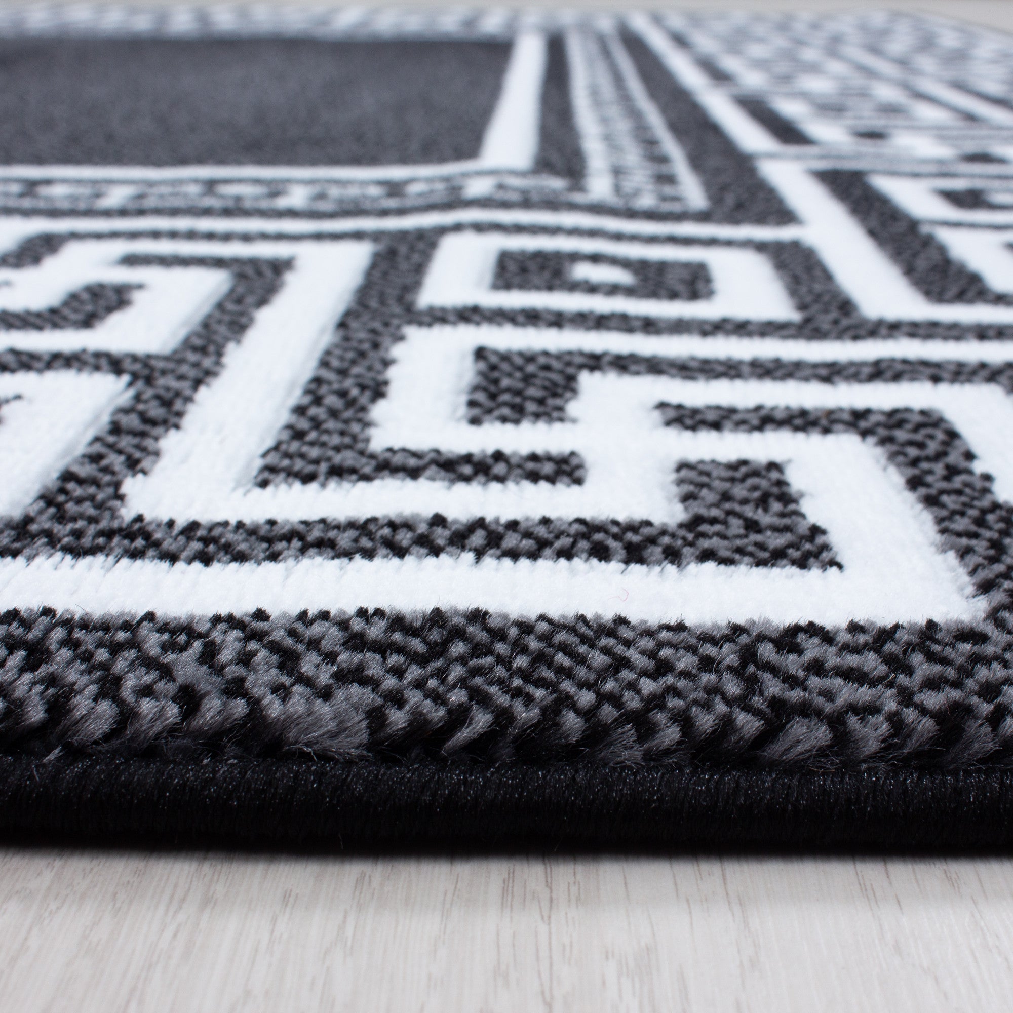 Der Modern Kurzflor Teppich Pararo in elegantem Schwarz mit modernem Mäander-Design bringt Stil und Gemütlichkeit in Ihr Zuhause. Aus strapazierfähigem Polypropylen gefertigt und maschinell gewebt, bietet der Teppich eine weiche und pflegeleichte Oberfläche. Der Teppich eignet sich ideal für das Wohnzimmer, Schlafzimmer, Esszimmer, Gästezimmer, Jugendzimmer oder die Diele. Das Mäander-Design sorgt für eine harmonische und stilvolle Atmosphäre. Der Teppich schützt Ihre Böden zuverlässig und ist in verschiedenen Größen erhältlich. Reinigung erfolgt bequem per Handwäsche.