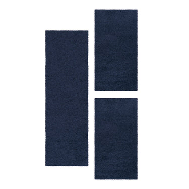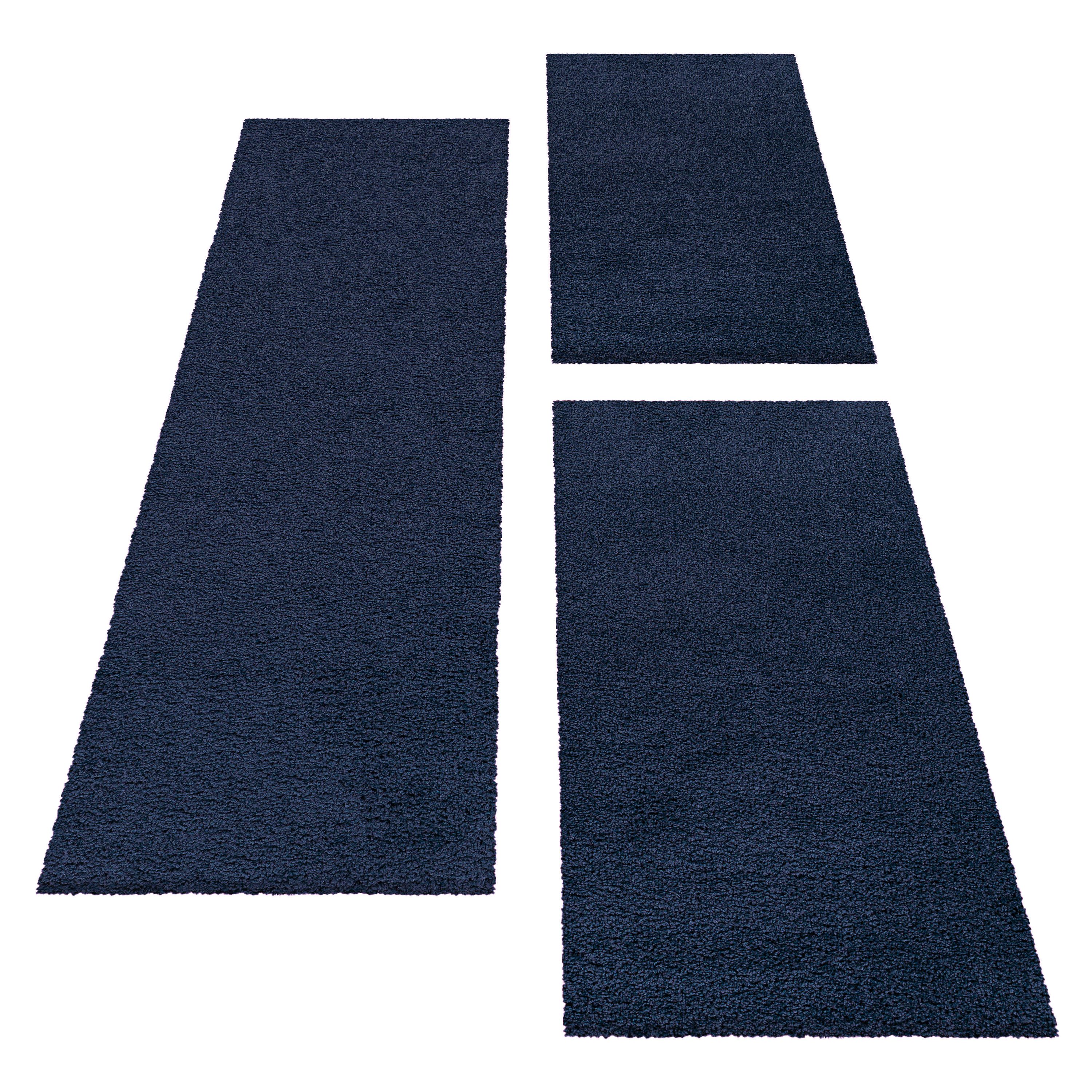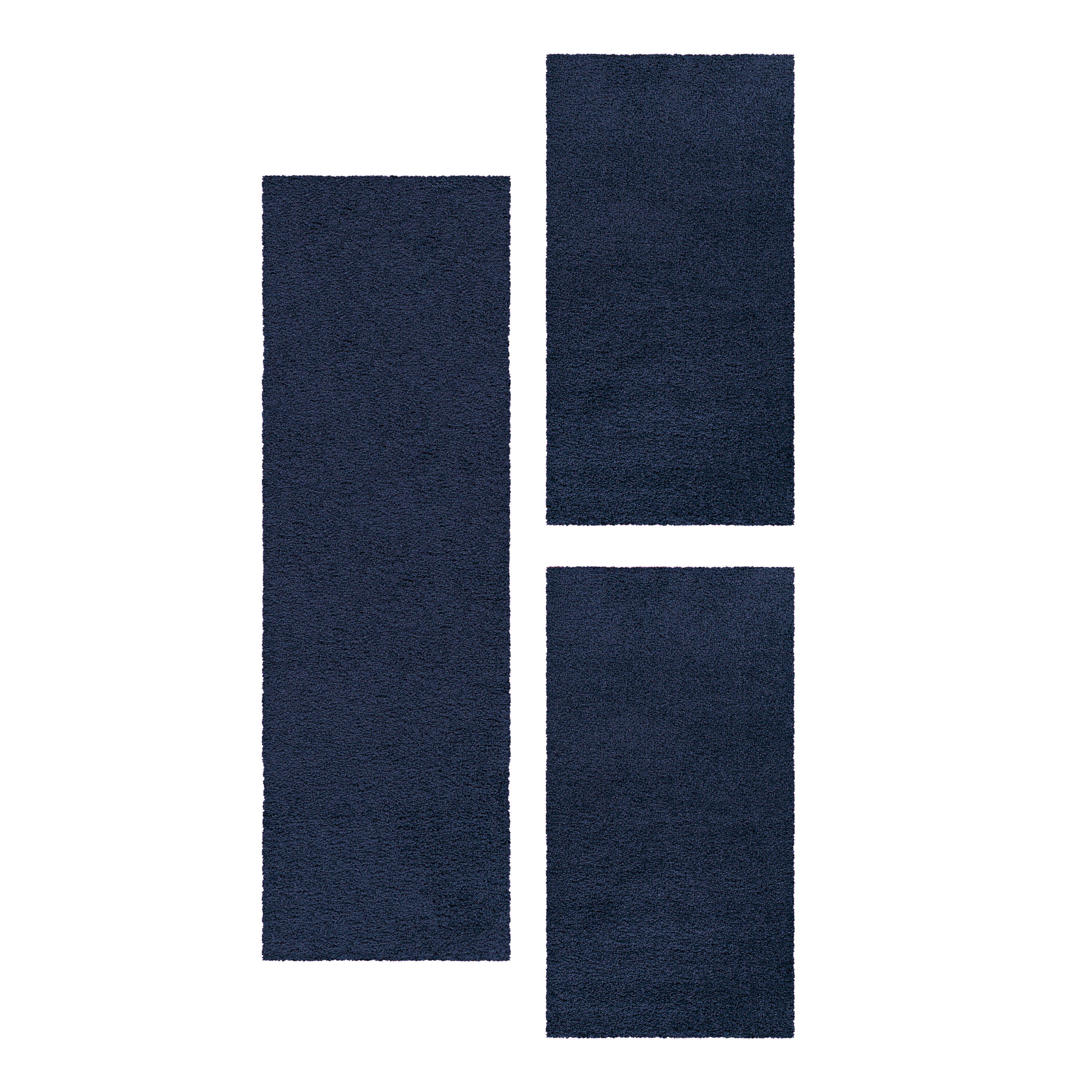 Villa XL Lifiva Bettumrandungs-Teppich Set Marinblau Hochflor & Elegant