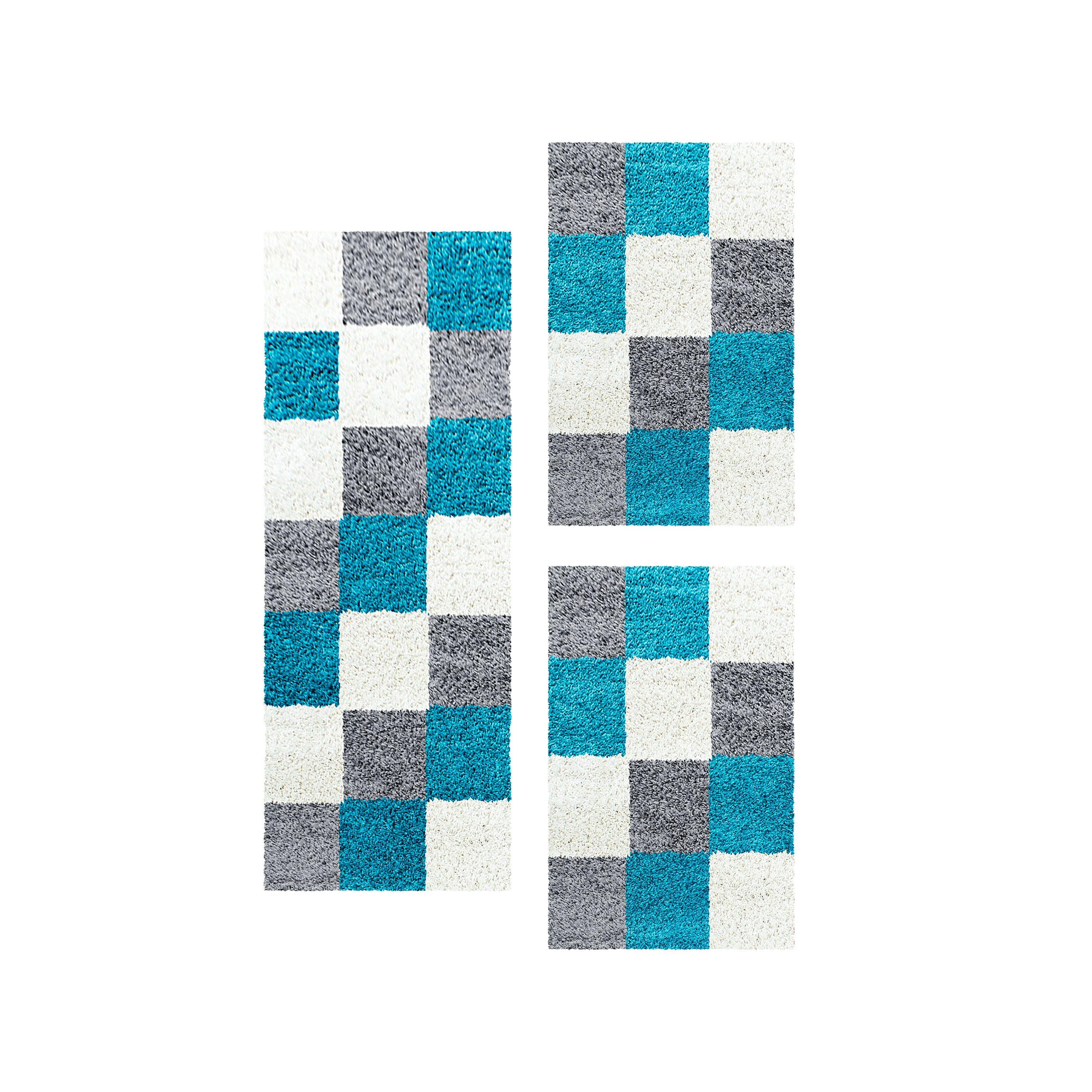 Villa XL Lifiva Bettumrandungs-Teppich Set Türkis Hochflor & Elegant