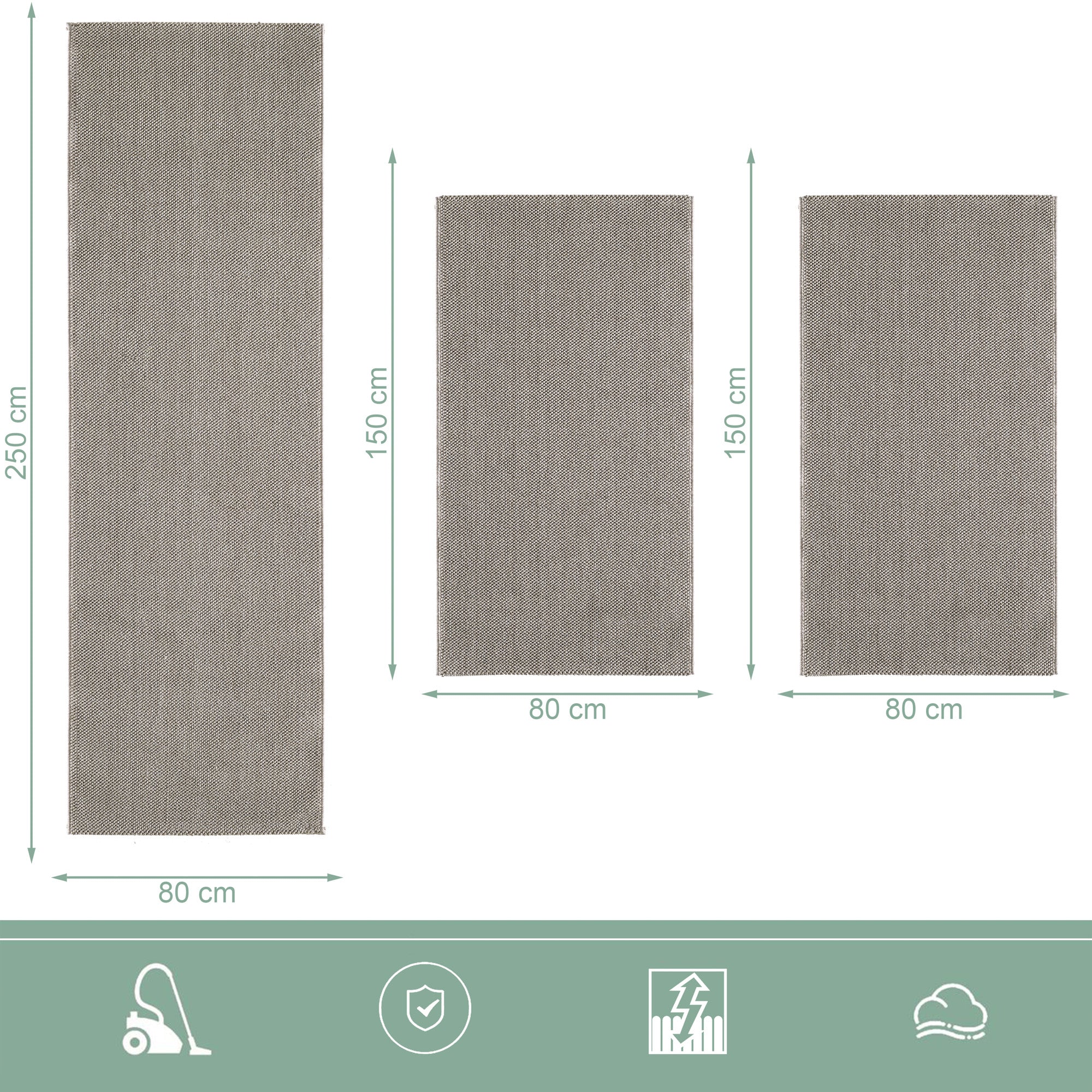 Die dezente Farbgebung lässt sich mühelos mit verschiedenen Einrichtungsstilen kombinierenund sorgt für eine ruhige Atmosphäre. Ideal als Bettumrandung schützt das Set den Boden rund ums Bettund bietet gleichzeitig optische Struktur. Die Verarbeitung ist strapazierfähigund für den täglichen Gebrauch bestens geeignet.