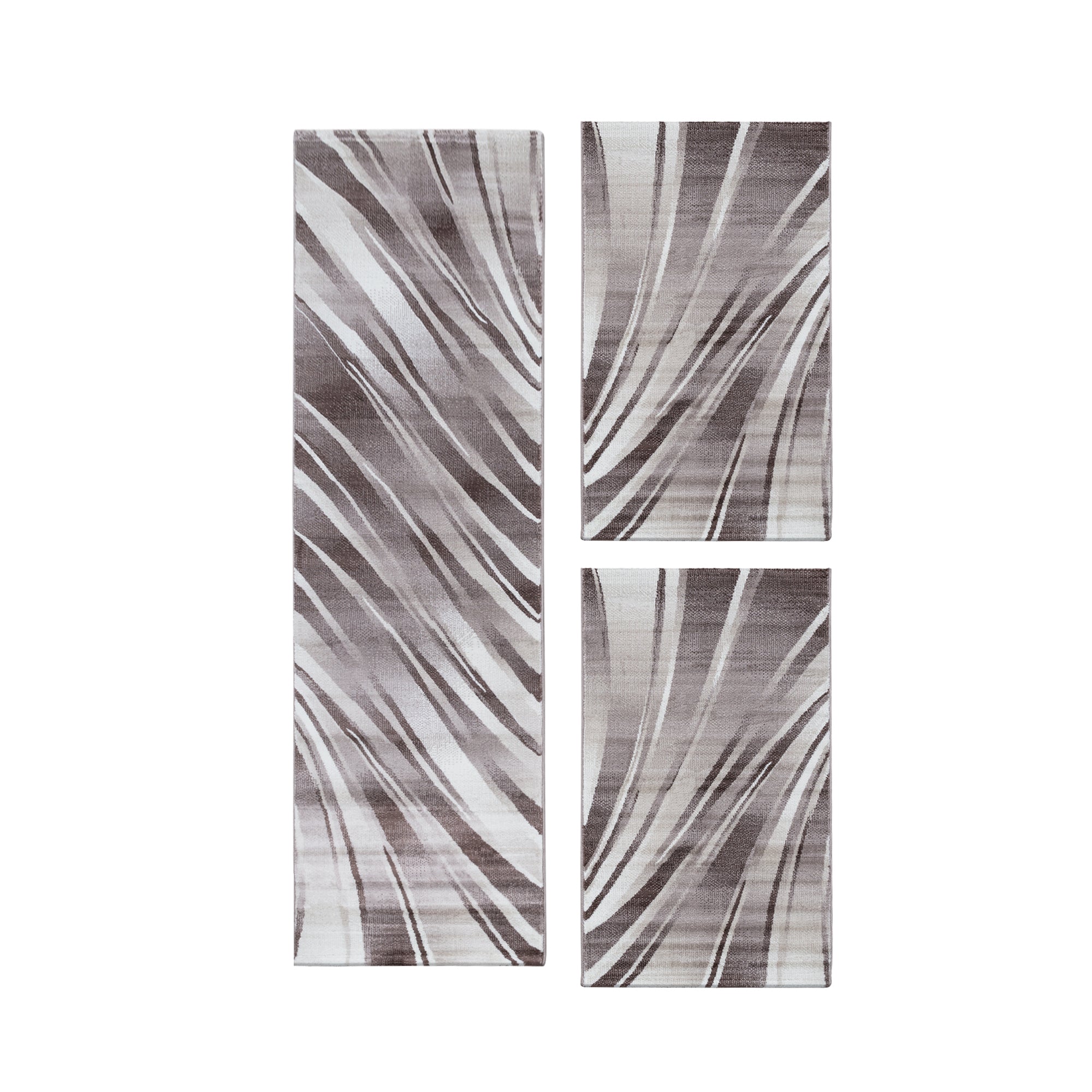 Das Pararo Bettumrandungs-Set in Braun bringt modernes Wohngefühl in dein Schlafzimmer.Mit seinem abstrakten Wellen-Design setzt es stilvolle Akzente und harmoniert perfekt mit zeitgenössischen Einrichtungsstilen.Der weiche Kurzflor sorgt für angenehmen Komfort beim Aufstehen, während die rutschfeste Unterseite Stabilität bietet.