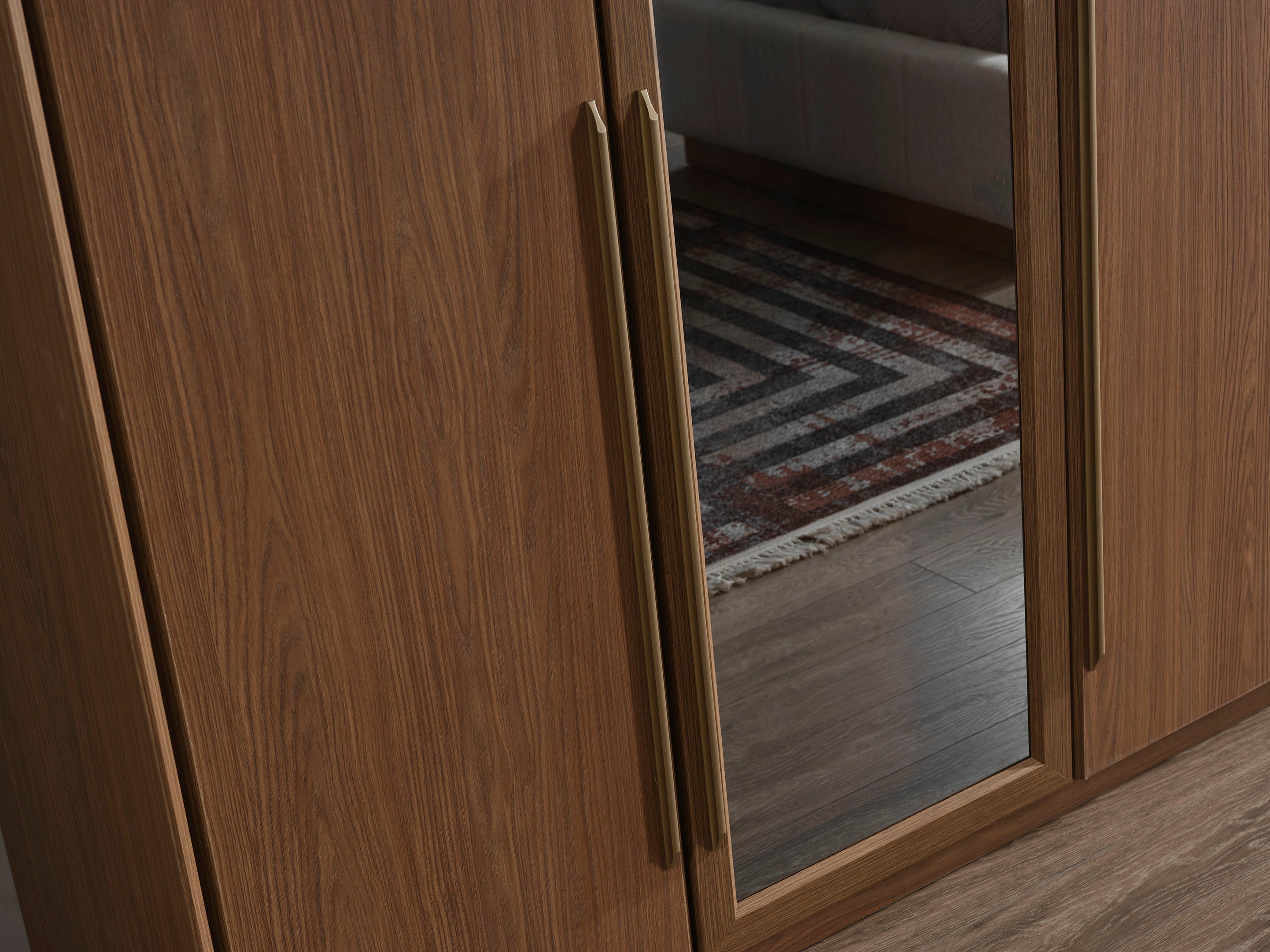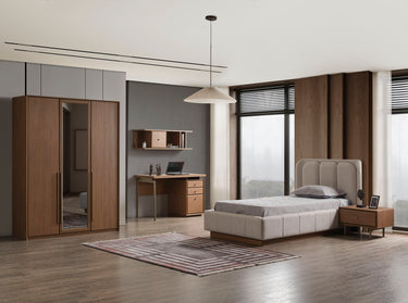 Das Jugendzimmer-Set Napoli überzeugt durch seine zeitlose Gestaltung und hochwertige Materialwahl. In edler Rubens-Walnuss-Optik mit eleganten Stoffelementen gehalten, bringt es Wärme und Stil in jeden Raum. Das gepolsterte Bett mit schlichter Linienführung lädt zum Entspannen ein, während der großzügige Kleiderschrank mit Spiegel für praktische Ordnung sorgt.