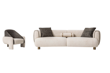 Das Vinci Sofa Set kombiniert elegantes Design mit höchstem Wohnkomfort. Mit 3-Sitzer, 4-Sitzer und passendem Sessel entsteht eine harmonische Sofagarnitur, die durch ihre klaren Linien und den edlen Stoffbezug besticht. Die großzügigen Sitzflächen und die weiche Polsterung schaffen eine luxuriöse Wohnatmosphäre, die ideal für große Wohnzimmer geeignet ist.