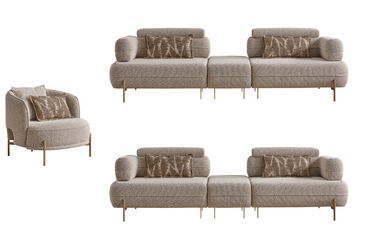 Startseite Kategorie Sofa Set Nova Sofa Set – Modernes Sitzgarnitur in Beige mit geschwungener Form & Komfort