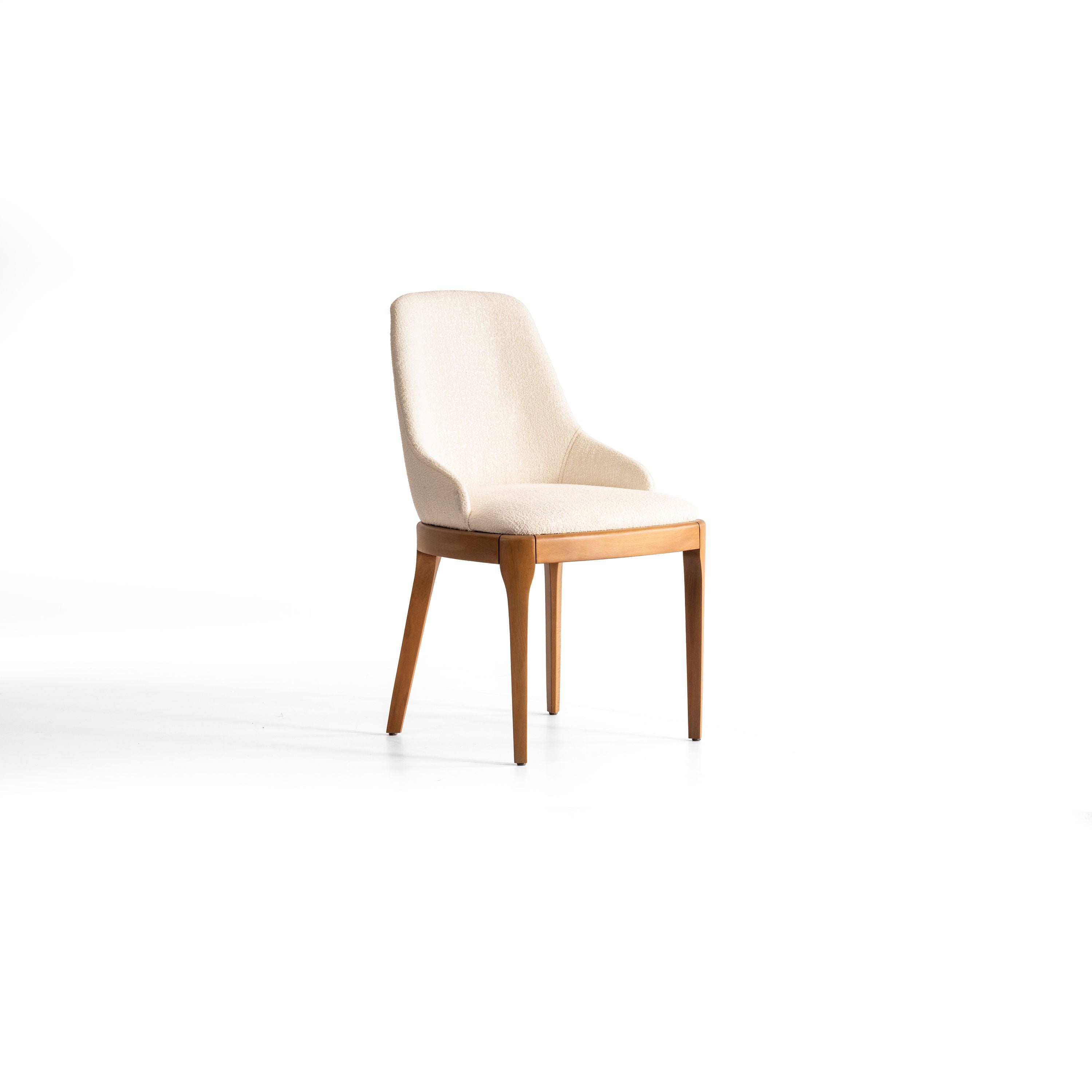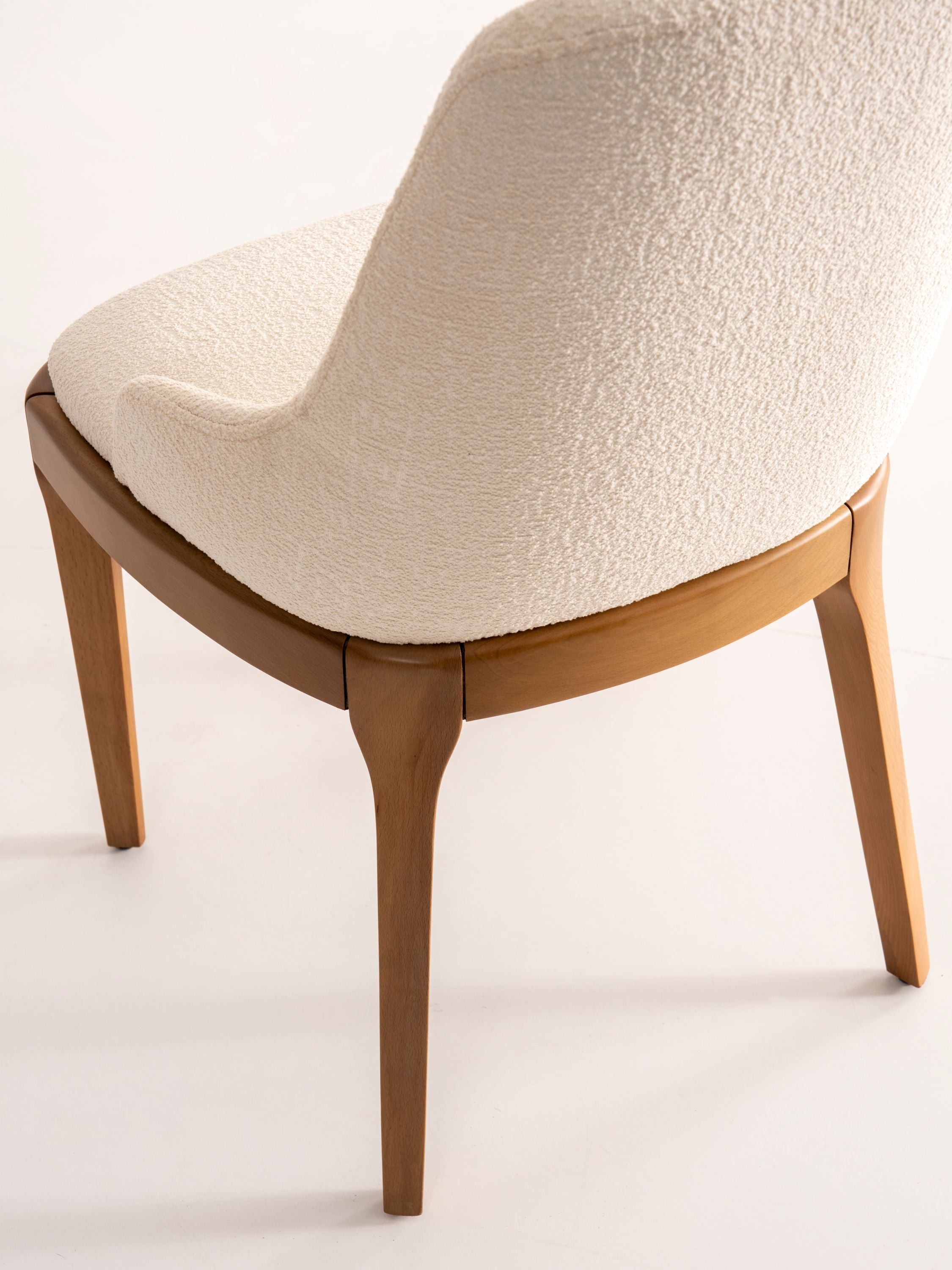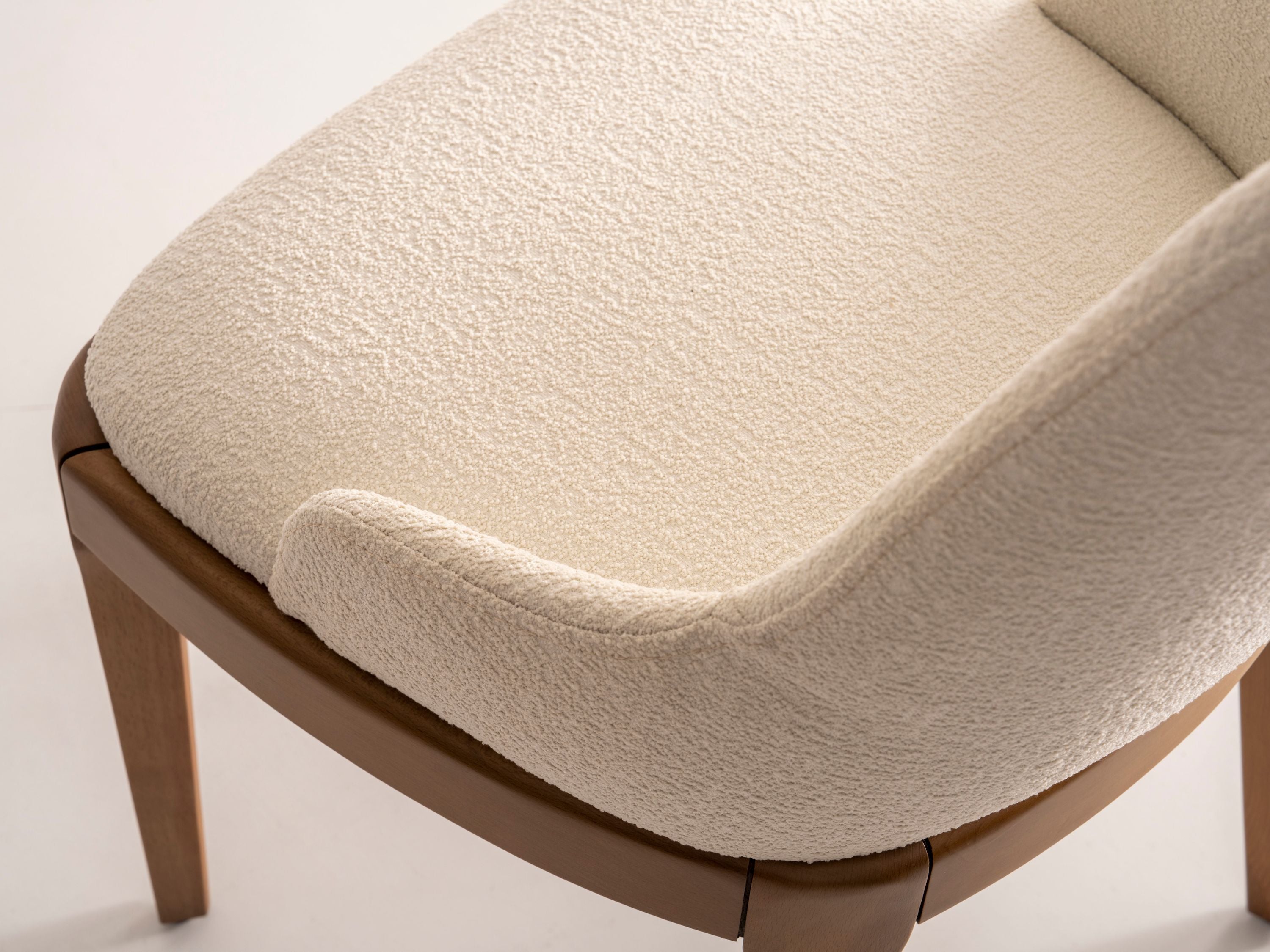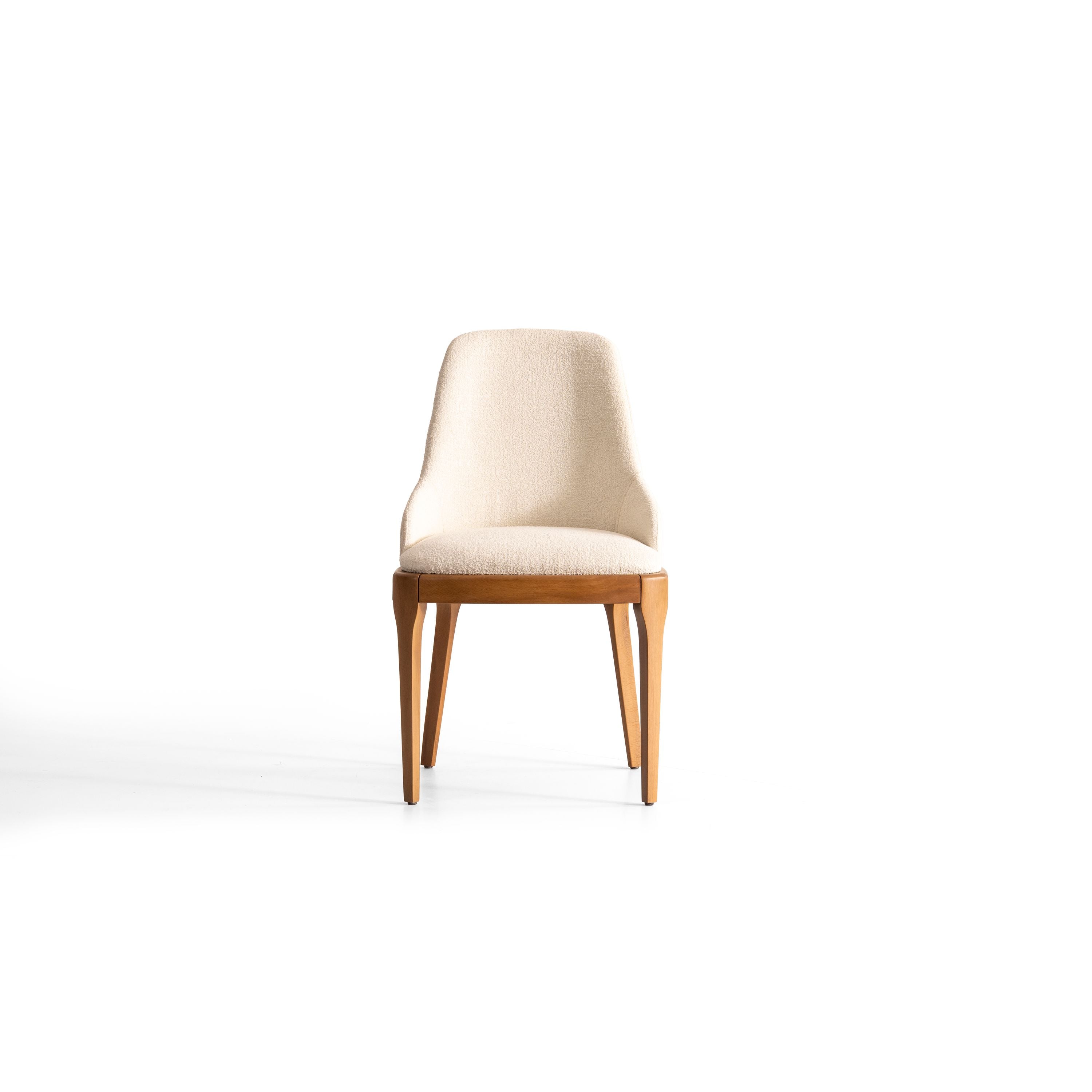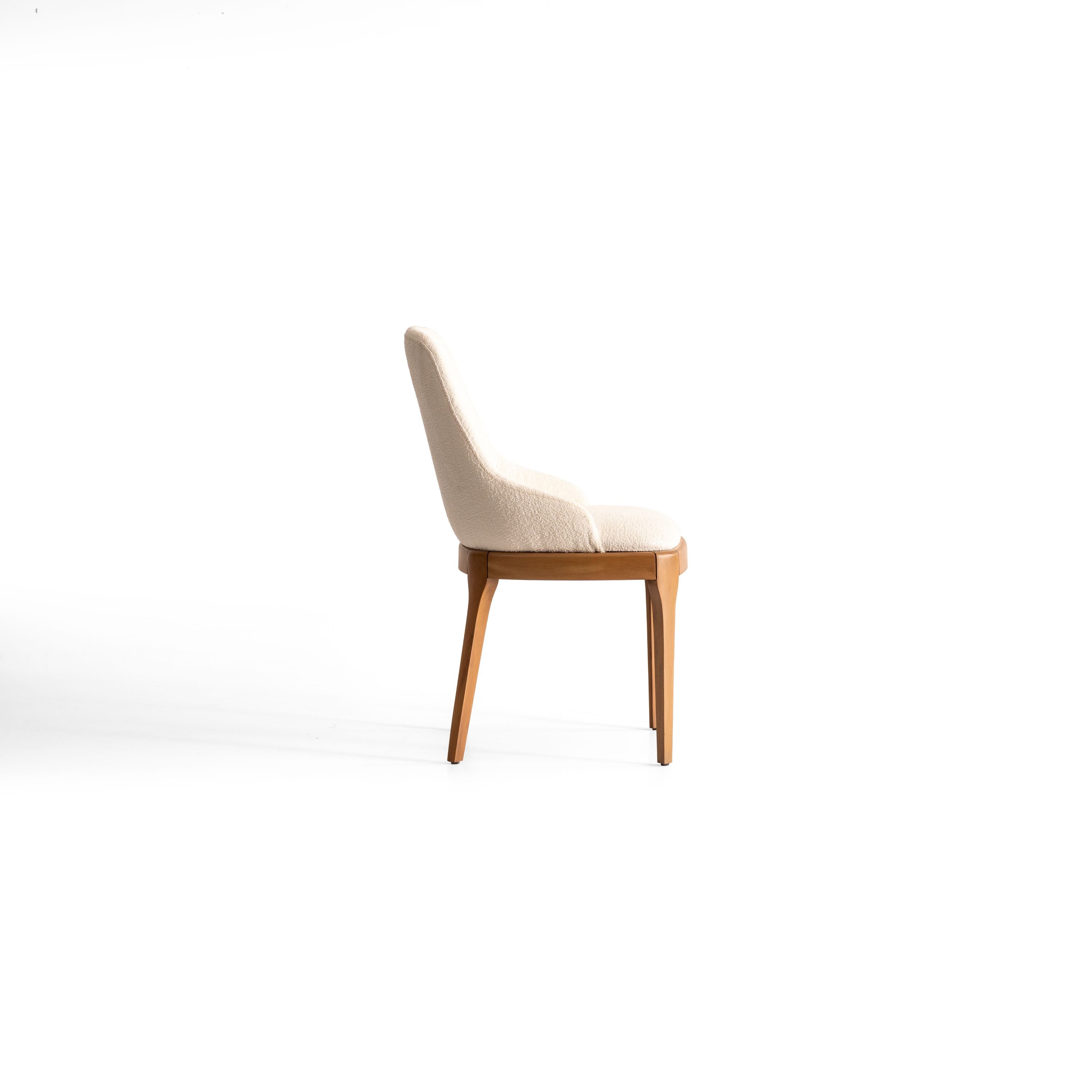 Der Stuhl Artika verbindet modernes Design mit maximalem Sitzkomfort. Der Bezug aus Teddystoff in Beige sorgt für eine weiche Haptik und eine warme, gemütliche Ausstrahlung. Die leicht geschwungene ergonomische Rückenlehne mit integrierten Armlehnen bietet optimalen Halt und passt sich der natürlichen Sitzhaltung an. Die stabilen Holzfüße in Naturton verleihen dem Stuhl eine edle, zeitlose Optik und sorgen für eine robuste Konstruktion. Dank der kompakten Maße (H/B/T: 88 x 51,5 x 45,5 cm) fügt sich der Stuhl harmonisch in Esszimmer, Wohnbereiche oder stilvolle Arbeitsräume ein.