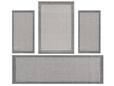 Das Set besteht aus vier abgestimmten Teppichen: ein großer Teppich (160x230 cm) als zentrales Highlight, zwei mittlere Teppiche (je 80x150 cm) für Schlaf- oder Essbereiche sowie ein Läufer (80x250 cm) für Flur oder Eingangsbereich. So entsteht ein durchgängiges, wohnliches Ambiente im ganzen Zuhause.