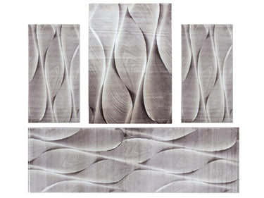 Das Set umfasst vier Teppiche in abgestimmten Größen: ein großer Teppich (160x230 cm) als zentrales Highlight, zwei mittlere Teppiche (je 80x150 cm) zur Ergänzung in Schlaf- oder Esszimmern, sowie ein Läufer (80x250 cm) für Flur und Eingangsbereiche. So entsteht ein durchgängiges, stilvolles Wohnkonzept. Maße: 1 × 160×230 cm, 2 × 80×150 cm, 1 × 80×250 cm.