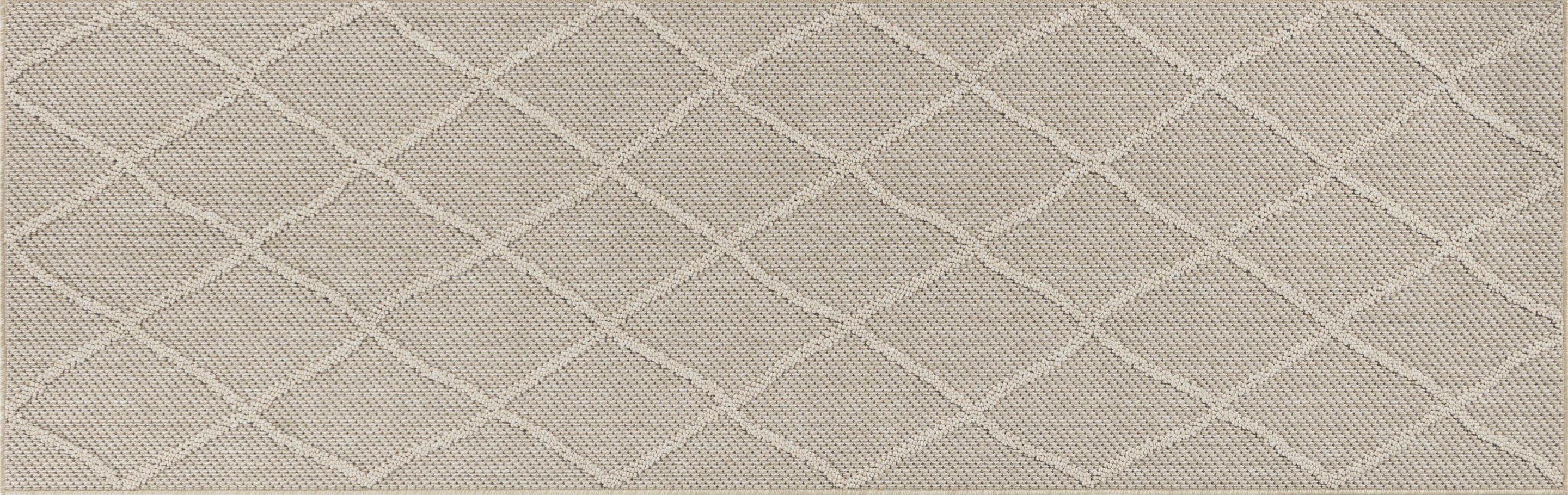 Gefertigt aus pflegeleichtem Polypropylen mit stabilem Rücken aus Jute und Polyester ist der Teppich strapazierfähig und langlebig. Die Florhöhe von ca. 30 mm bietet eine angenehm weiche Oberfläche, die zum Barfußlaufen einlädt. Sauber eingefasste Kanten und hochwertige Verarbeitung garantieren eine lange Lebensdauer im Alltag.