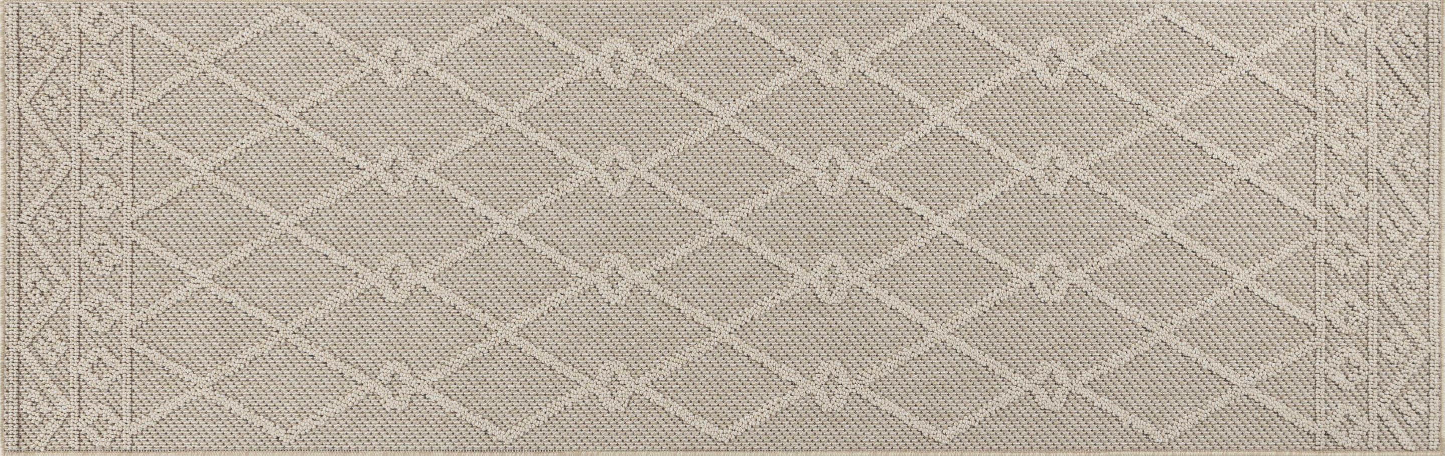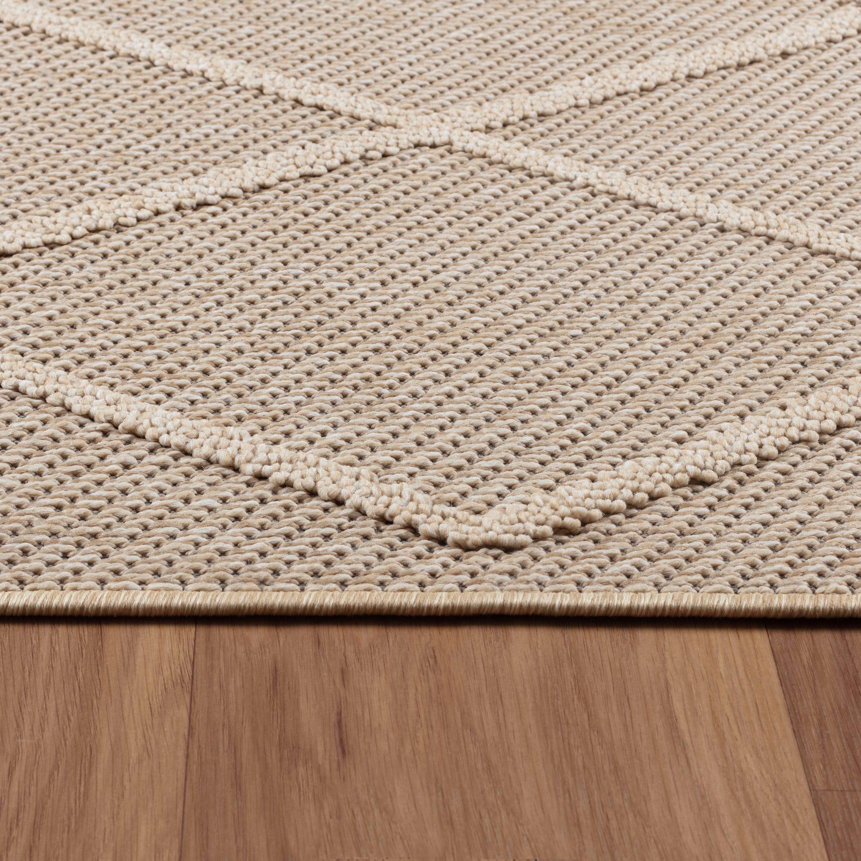 Gefertigt aus pflegeleichtem Polypropylen mit stabilem Rücken aus Jute und Polyester ist der Teppich strapazierfähig und langlebig. Die Florhöhe von ca. 30 mm bietet eine angenehm weiche Oberfläche, die zum Barfußlaufen einlädt. Sauber eingefasste Kanten und hochwertige Verarbeitung garantieren eine lange Lebensdauer im Alltag.