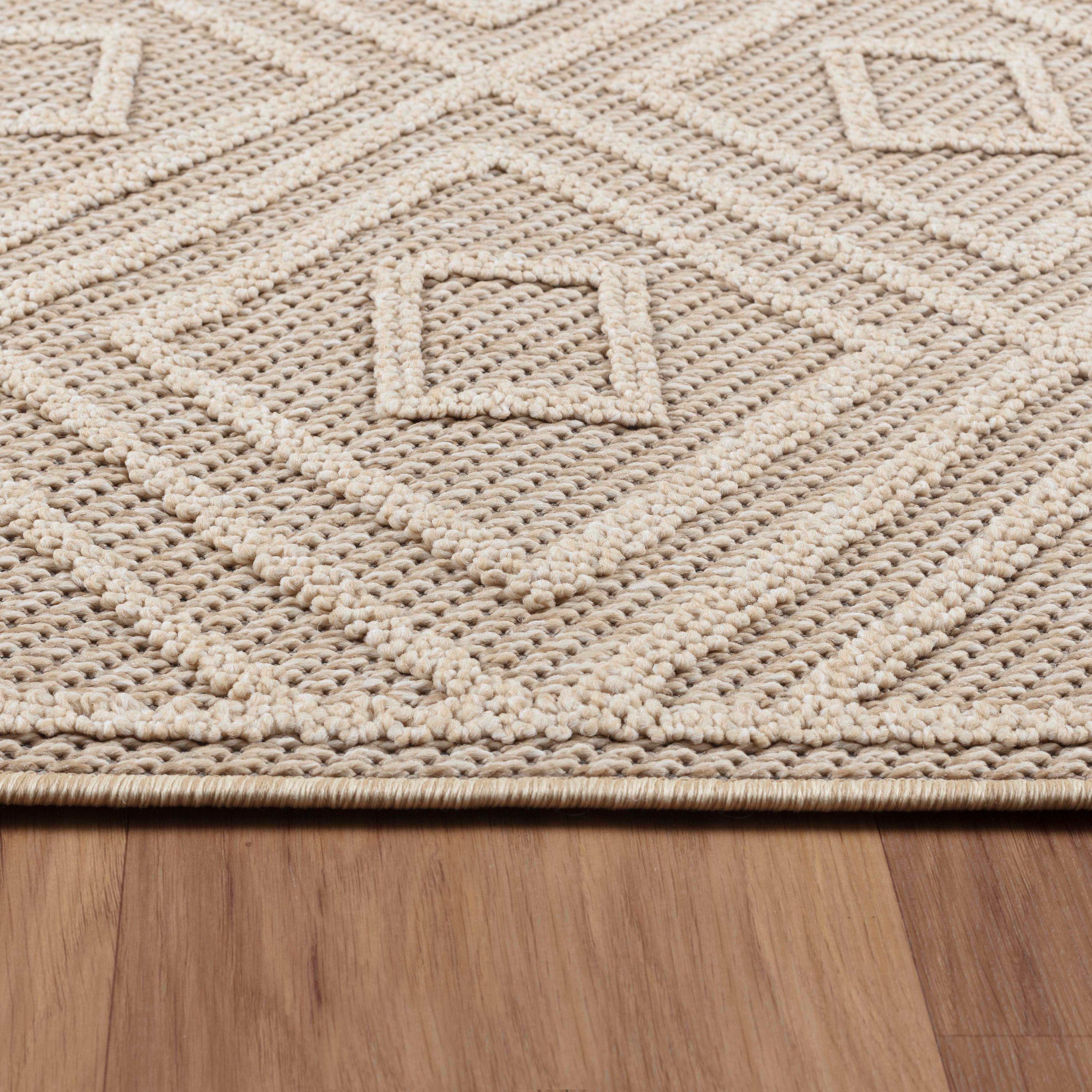 Gefertigt aus pflegeleichtem Polypropylen mit stabilem Rücken aus Jute und Polyester ist der Teppich strapazierfähig und langlebig. Die Florhöhe von ca. 30 mm bietet eine angenehm weiche Oberfläche, die zum Barfußlaufen einlädt. Sauber eingefasste Kanten und hochwertige Verarbeitung garantieren eine lange Lebensdauer im Alltag.