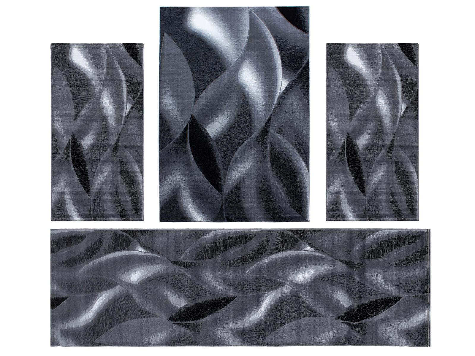 Villa XL Pluiva Teppich-Set Schwarz - 4-teiliges Set für Ihr Zuhause