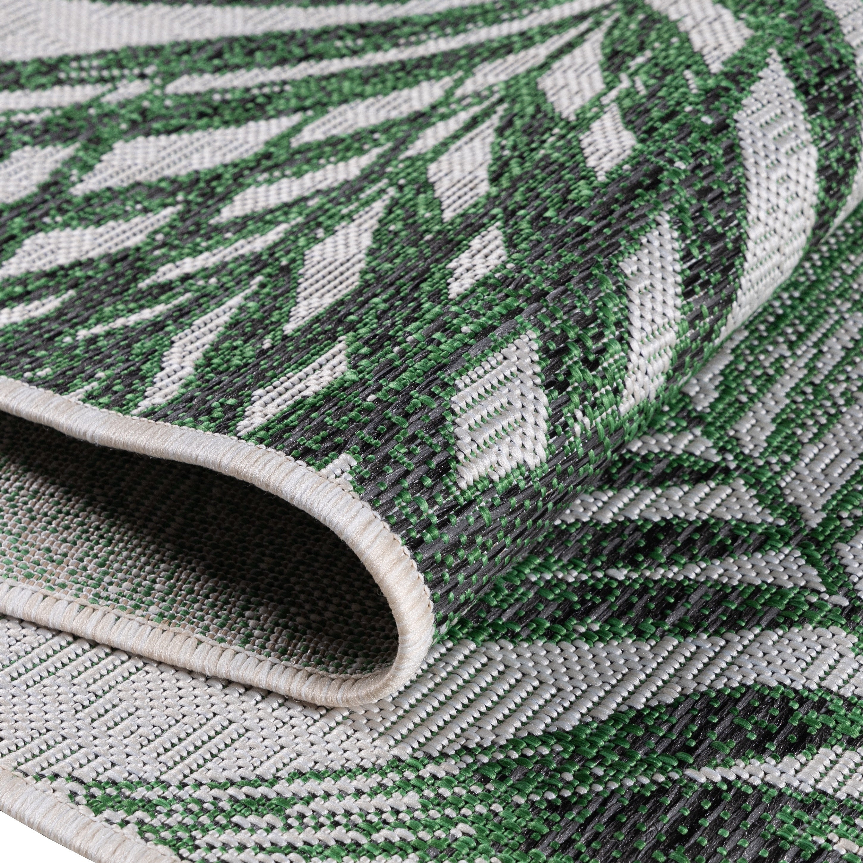 Der Outdoorteppich Sunique mit modernem Palmen-Design in frischem Grün sorgt für Urlaubsfeeling in Ihrem Zuhause. Das strapazierfähige Flachgewebe aus Polypropylen ist maschinell gewebt und ideal für den Einsatz in der Küche, auf dem Balkon, der Terrasse oder beim Picknick. Der Teppich ist rutschfest, pflegeleicht und wetterbeständig – perfekt für Innen- und Außenbereiche. Er schützt Ihre Böden zuverlässig und setzt stilvolle Akzente. Pflegehinweis: einfache Handwäsche.