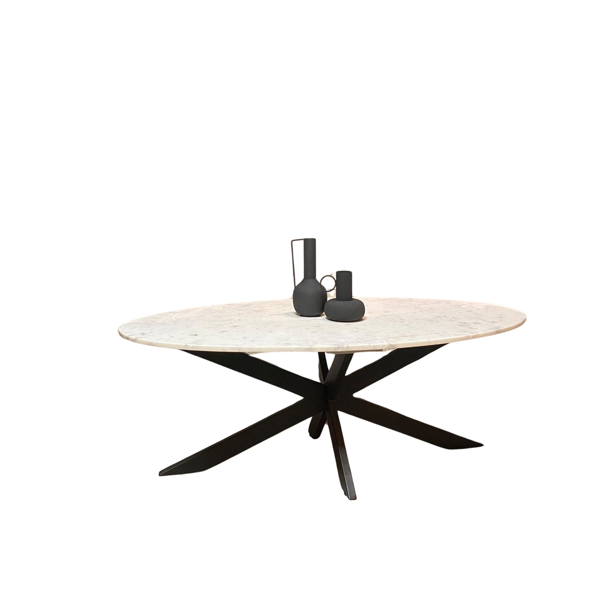 Der Couchtisch Luna verf ügt über eine weiße Marmorplatte und ein schwarz lackiertes Matrix-Bein.Abmessungen der Tischplatte Breite: 130 cm Tiefe: 70 cm Höhe: 46 cmAbmessung Matrix-Bein Breite: 6 cm Tiefe: 2,5 cmPflege: mit einem leicht feuchten Tuch abwischen.