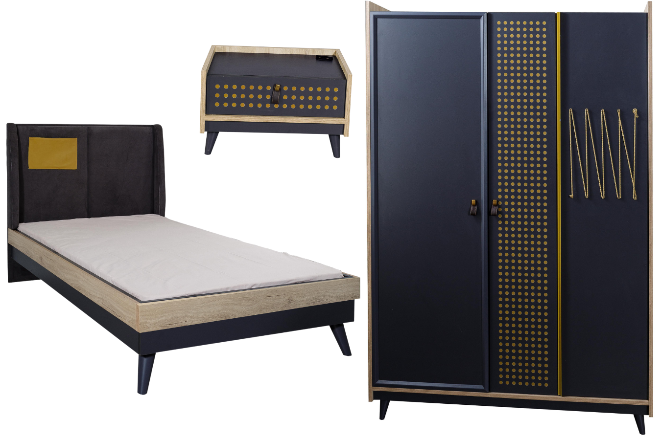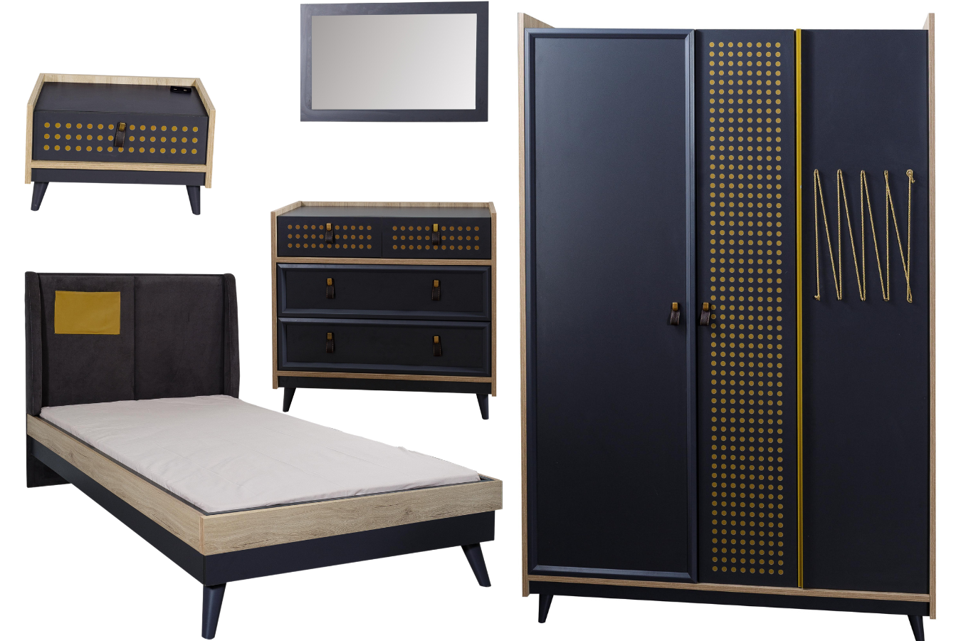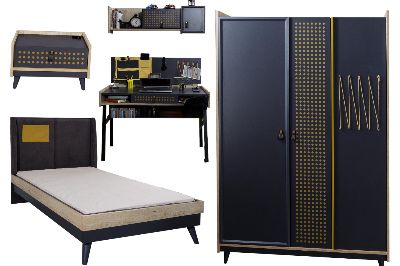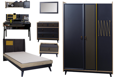 Das Dark Point Kinderzimmer vereint modernes Design und hochwertige Materialien, um ein gemütliches und stilvolles Kinderzimmer zu schaffen. Mit seiner eleganten Ästhetik und langlebigen Komponenten ist dieses Set perfekt für den täglichen Gebrauch geeignet.