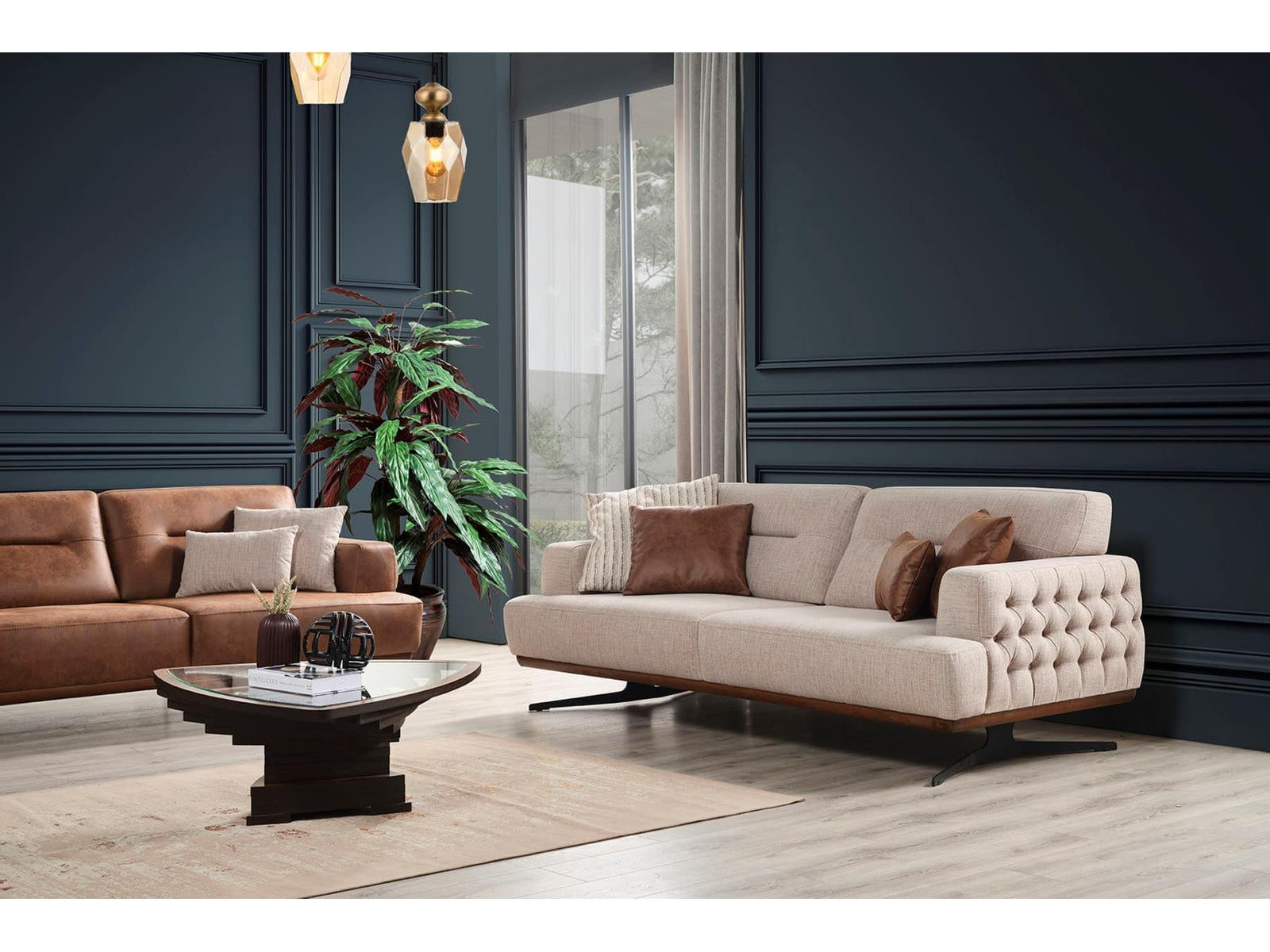 Duru-Lite Sofa Set – Stilvolle Kombination aus Braun & Beige für modernes Wohnen