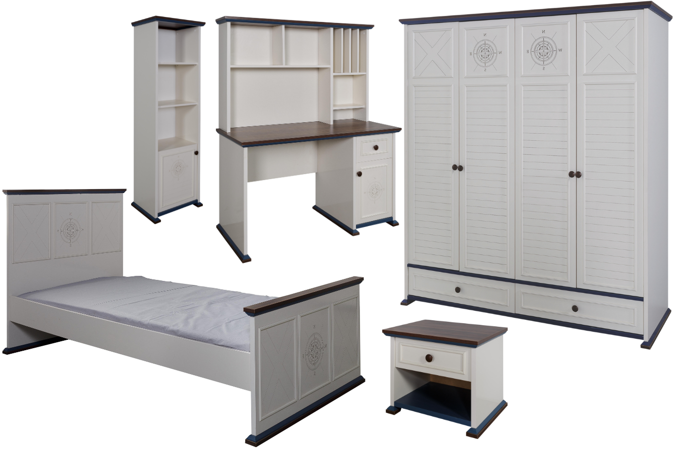 XL-B Set besteht aus Bett-Kleiderschrank-Nachttisch-Schreibtisch-Bücherschrank-Zusatzbett