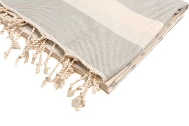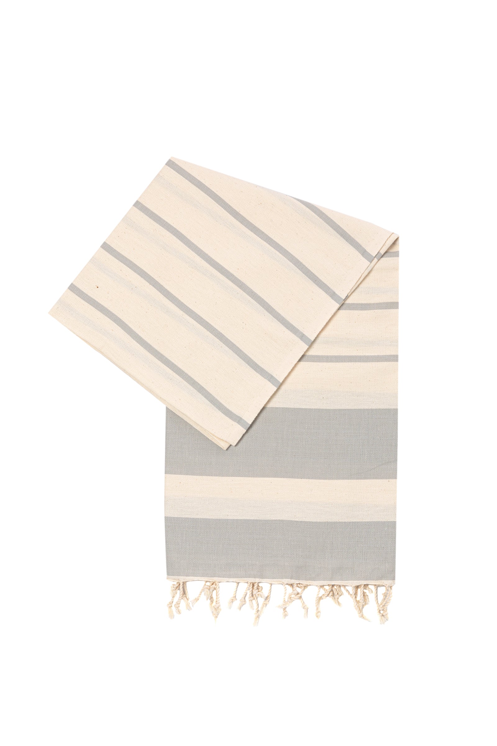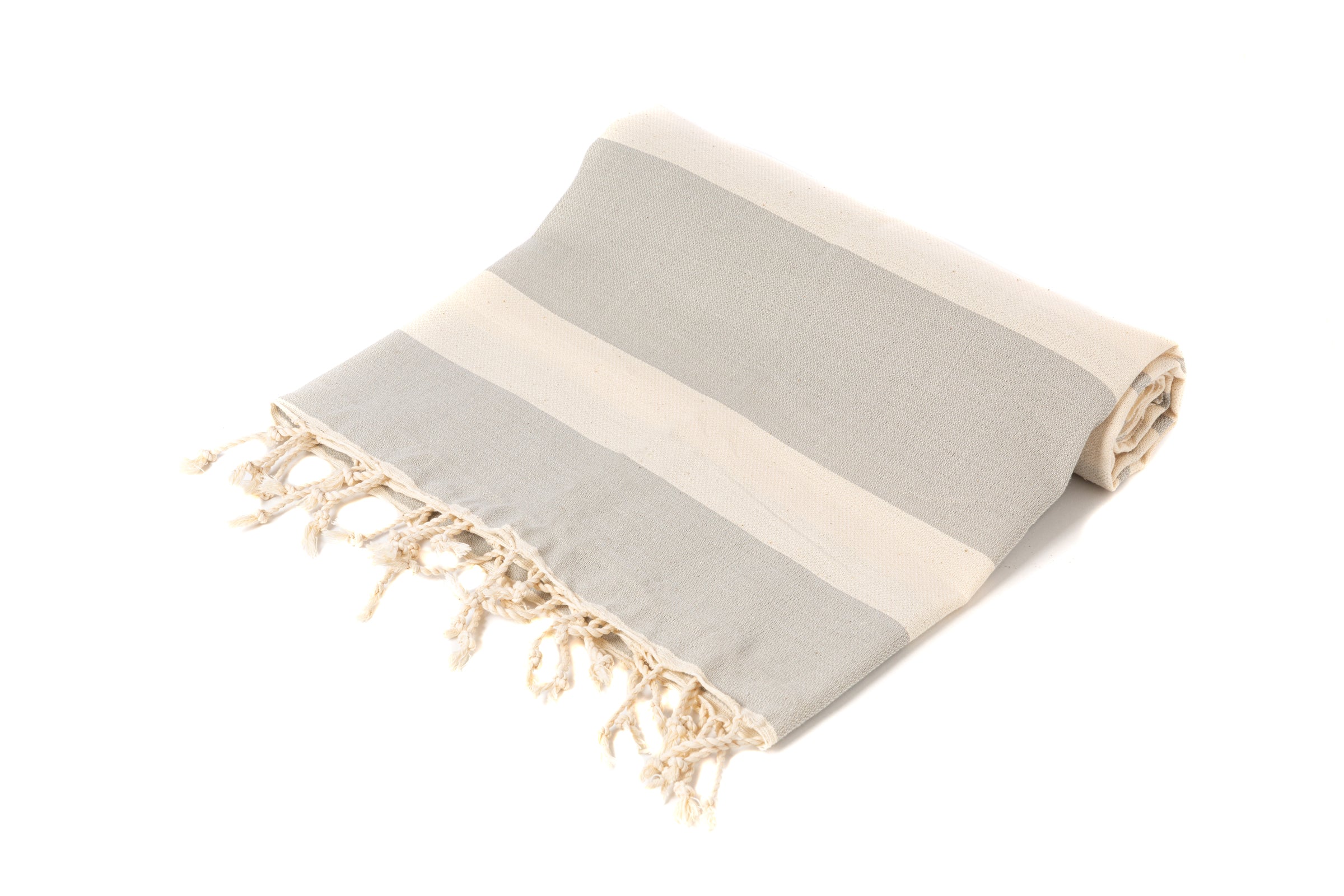 Villa XL Strandtuch, Hamamtuch, Saunatuch, Yogatuch, Gestreift, 100% Baumwolle , Saunatuch Yogatuch, für Babys geeignet. Pestemal – Das vielseitige Hamam-Tuch aus 100 % Baumwolle Ein Pestemal ist ein traditionelles türkisches Hamam-Tuch, das durch seine praktischen Eigenschaften vielseitig verwendet werden kann. Es lässt sich überall leicht verstauen und benötigt nur ein Viertel des Platzes eines klassischen Frottee-Handtuchs. Hergestellt aus 100 % Baumwolle, eignet es sich auch hervorragend für Säuglinge und Babys. Produkteigenschaften: Farbe: Grau Größe: 100 x 180 cm Gewicht: 265 g Material: 100 % Baumwolle, doppelseitig Jacquard gewebt PRAKTISCH Verwendbar als Badetuch, Strandtuch, Hamamtuch, Saunatuch, Handtuch, Fouta oder klassisches Pestemal – ideal für Strand, Pool, Fitness, Hammam, Sauna, Yoga, Sport, Camping und Picknick. SAUGFÄHIG & ULTRAWEICH Trocknet schnell, ist extrem weich und besonders geeignet für Babys, Kleinkinder sowie Erwachsene mit empfindlicher Haut. Kein Pilling! LEICHT & KOMPAKT Passt in jede Tasche, lässt sich einfach zusammenrollen und spart Platz – ideal auf Reisen. PFLEGELEICHT Maschinenwaschbar bei 30 °C, trocknet deutlich schneller als herkömmliche Frotteehandtücher. Wird mit jeder Wäsche weicher und saugfähiger. NACHHALTIG & SICHER Aus naturgefärbter, reiner Baumwolle – frei von schädlichen Stoffen oder Chemikalien, .