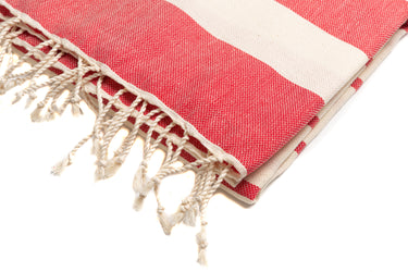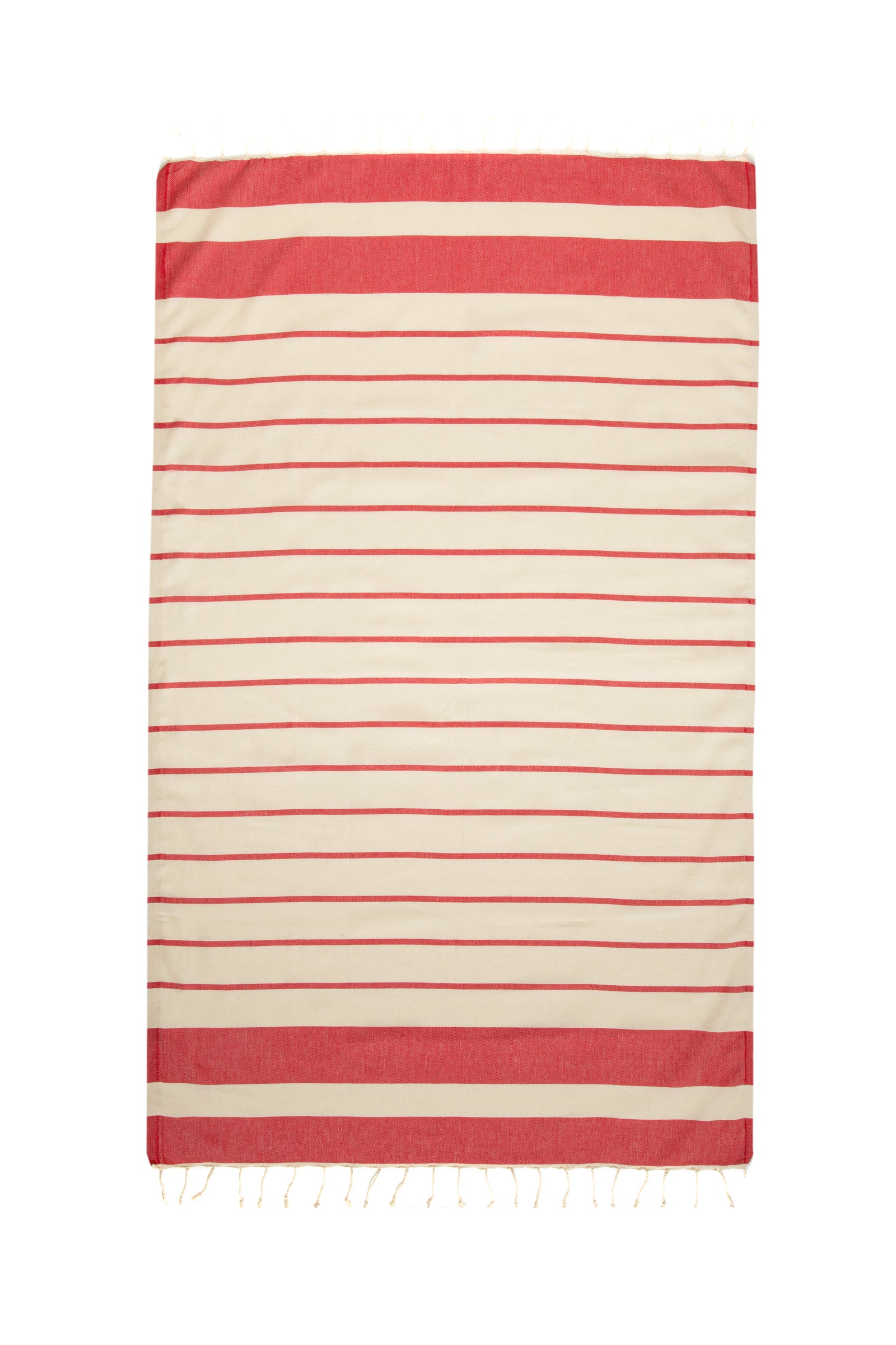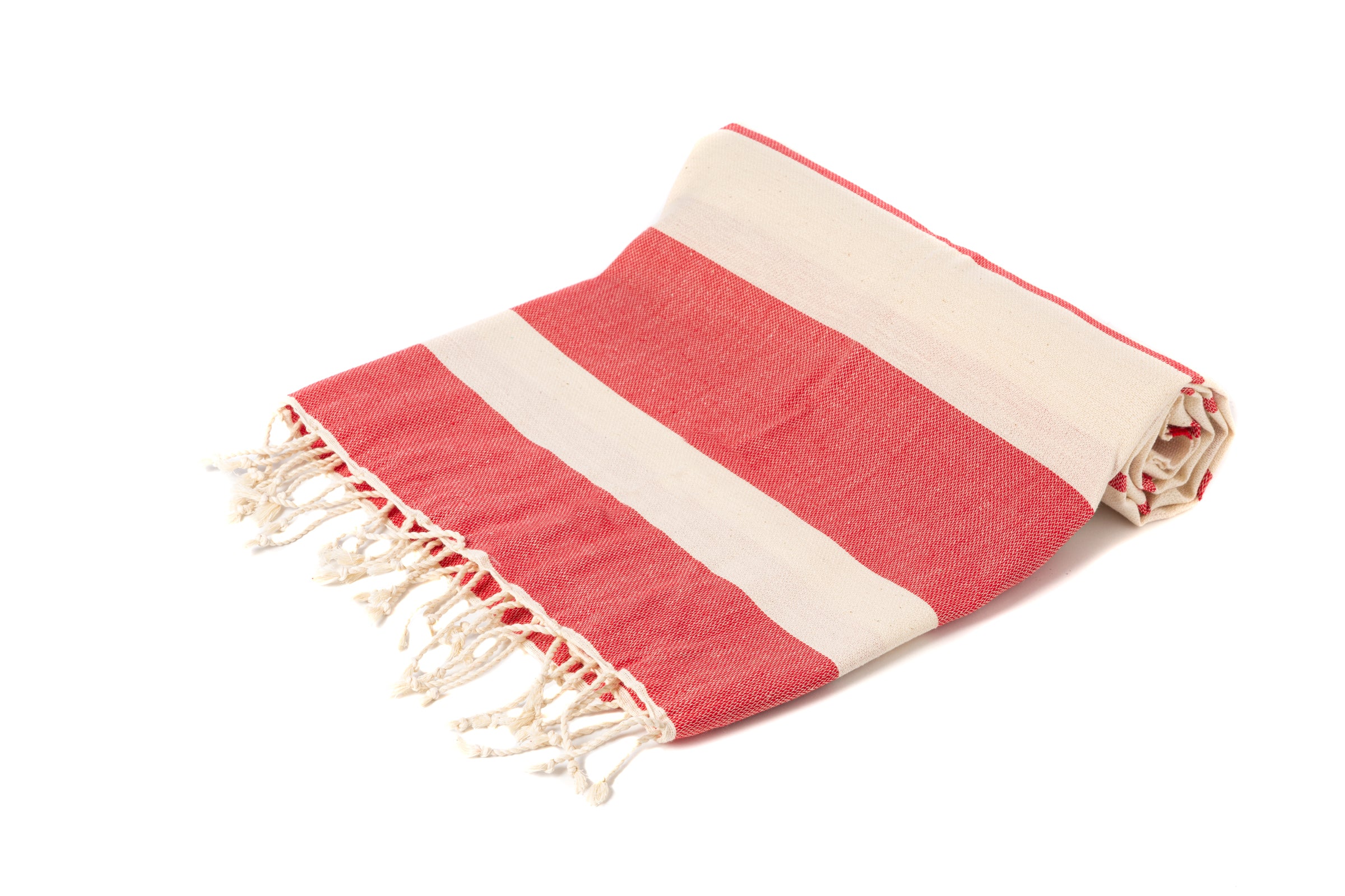 Villa XL Strandtuch, Hamamtuch, Saunatuch, Yogatuch, Gestreift, 100% Baumwolle , Saunatuch Yogatuch, für Babys geeignet. Pestemal – Das vielseitige Hamam-Tuch aus 100 % Baumwolle Ein Pestemal ist ein traditionelles türkisches Hamam-Tuch, das durch seine praktischen Eigenschaften vielseitig verwendet werden kann. Es lässt sich überall leicht verstauen und benötigt nur ein Viertel des Platzes eines klassischen Frottee-Handtuchs. Hergestellt aus 100 % Baumwolle, eignet es sich auch hervorragend für Säuglinge und Babys. Produkteigenschaften: Farbe: Rot Größe: 100 x 180 cm Gewicht: 265 g Material: 100 % Baumwolle, doppelseitig Jacquard gewebt PRAKTISCH Verwendbar als Badetuch, Strandtuch, Hamamtuch, Saunatuch, Handtuch, Fouta oder klassisches Pestemal – ideal für Strand, Pool, Fitness, Hammam, Sauna, Yoga, Sport, Camping und Picknick. SAUGFÄHIG & ULTRAWEICH Trocknet schnell, ist extrem weich und besonders geeignet für Babys, Kleinkinder sowie Erwachsene mit empfindlicher Haut. Kein Pilling! LEICHT & KOMPAKT Passt in jede Tasche, lässt sich einfach zusammenrollen und spart Platz – ideal auf Reisen. PFLEGELEICHT Maschinenwaschbar bei 30 °C, trocknet deutlich schneller als herkömmliche Frotteehandtücher. Wird mit jeder Wäsche weicher und saugfähiger. NACHHALTIG & SICHER Aus naturgefärbter, reiner Baumwolle – frei von schädlichen Stoffen oder Chemikalien, .