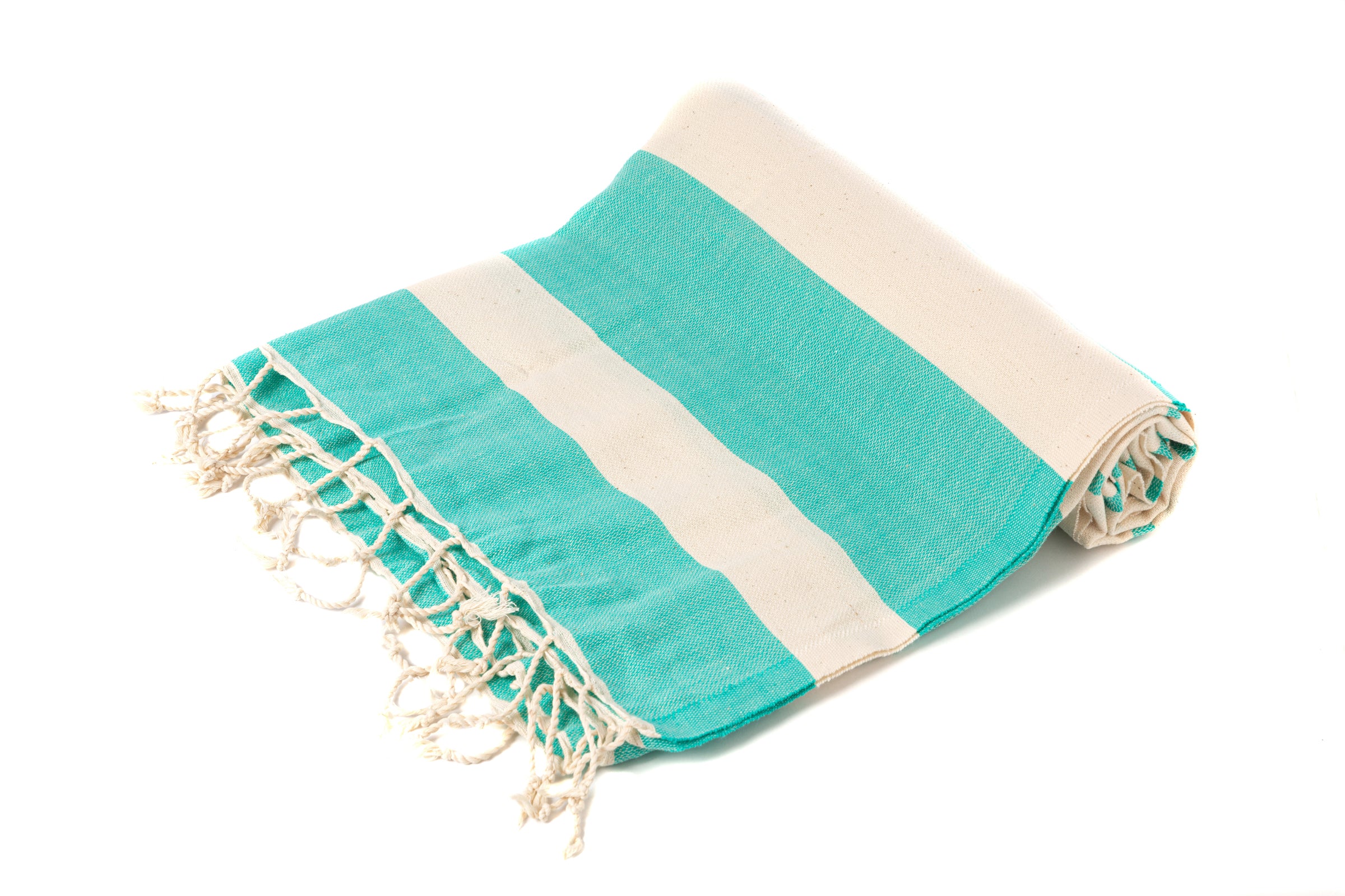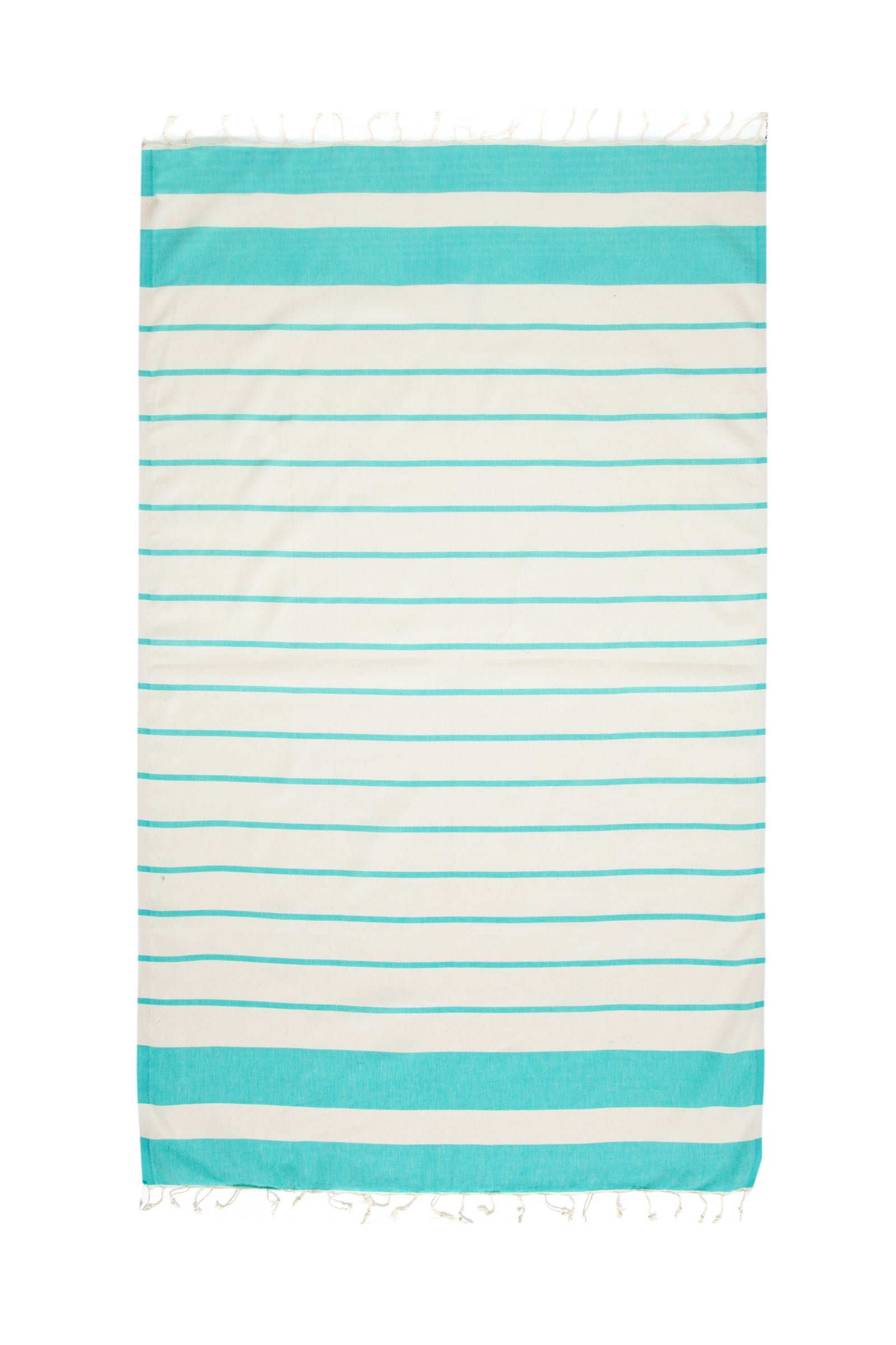 Villa XL Strandtuch, Hamamtuch, Saunatuch, Yogatuch, Gestreift, 100% Baumwolle , Saunatuch Yogatuch, für Babys geeignet. Pestemal – Das vielseitige Hamam-Tuch aus 100 % Baumwolle Ein Pestemal ist ein traditionelles türkisches Hamam-Tuch, das durch seine praktischen Eigenschaften vielseitig verwendet werden kann. Es lässt sich überall leicht verstauen und benötigt nur ein Viertel des Platzes eines klassischen Frottee-Handtuchs. Hergestellt aus 100 % Baumwolle, eignet es sich auch hervorragend für Säuglinge und Babys. Produkteigenschaften: Farbe: Türkis Größe: 100 x 180 cm Gewicht: 265 g Material: 100 % Baumwolle, doppelseitig Jacquard gewebt PRAKTISCH Verwendbar als Badetuch, Strandtuch, Hamamtuch, Saunatuch, Handtuch, Fouta oder klassisches Pestemal – ideal für Strand, Pool, Fitness, Hammam, Sauna, Yoga, Sport, Camping und Picknick. SAUGFÄHIG & ULTRAWEICH Trocknet schnell, ist extrem weich und besonders geeignet für Babys, Kleinkinder sowie Erwachsene mit empfindlicher Haut. Kein Pilling! LEICHT & KOMPAKT Passt in jede Tasche, lässt sich einfach zusammenrollen und spart Platz – ideal auf Reisen. PFLEGELEICHT Maschinenwaschbar bei 30 °C, trocknet deutlich schneller als herkömmliche Frotteehandtücher. Wird mit jeder Wäsche weicher und saugfähiger. NACHHALTIG & SICHER Aus naturgefärbter, reiner Baumwolle – frei von schädlichen Stoffen oder Chemikalien, .
