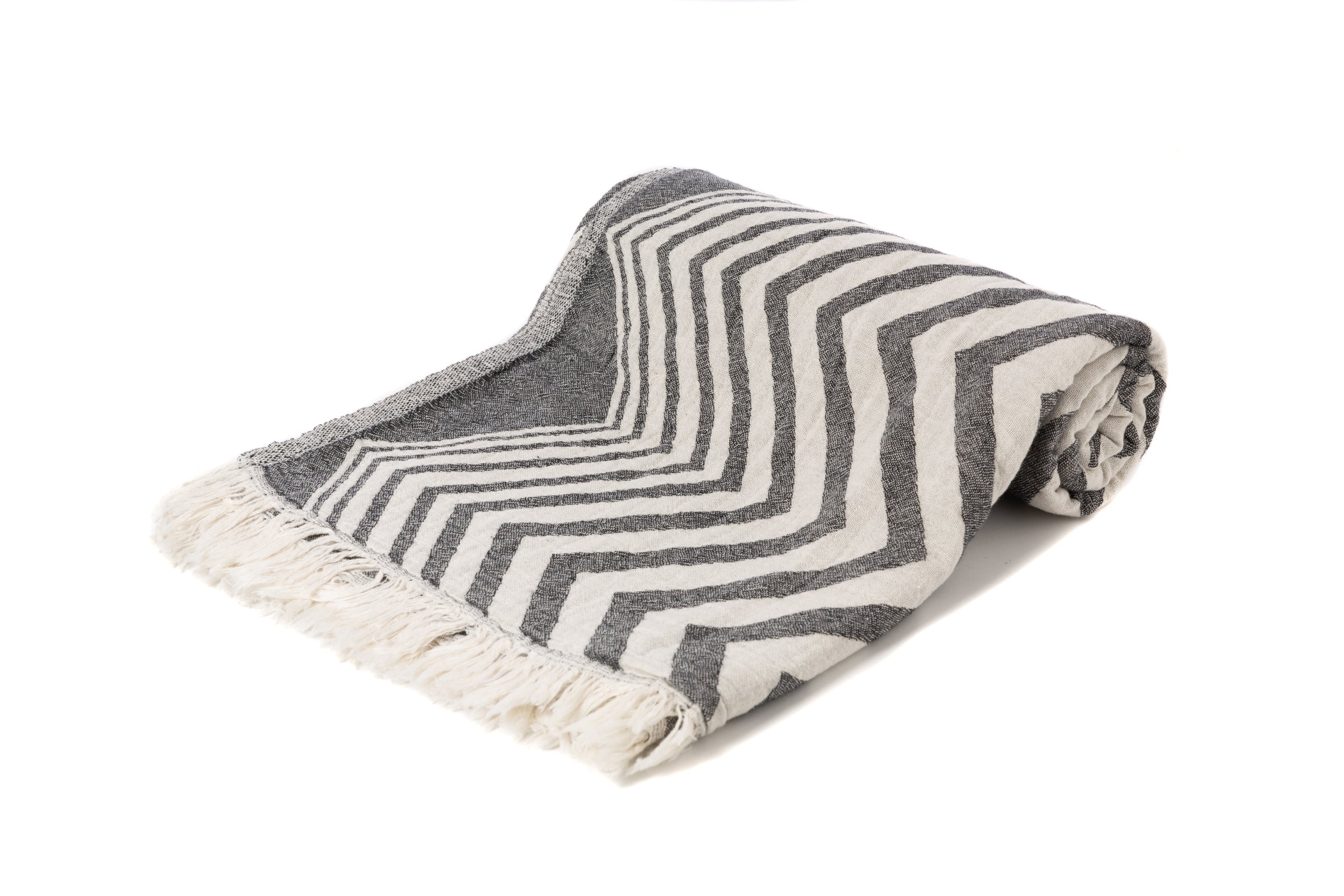 Strandtuch Hamamtuch Saunatuch Schwarz Zickzack 100% Baumwolle 100x180