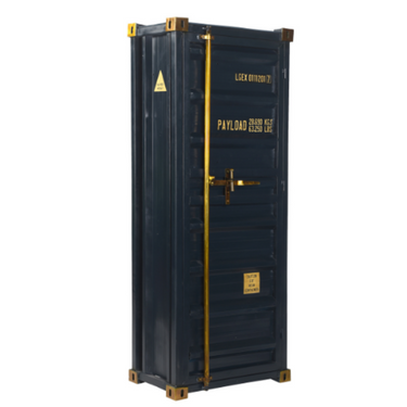 Der Container Bar besteht aus Metall, wobei der Rahmen aus Metall gefertigt und schwarz lackiert ist. Oben am Behälter können Weingläser aufgehängt werden.Abmessungen Breite: 74 cm Tiefe: 40 cm Höhe: 176 cmPflege: mit einem leicht feuchten Tuch abwischen.