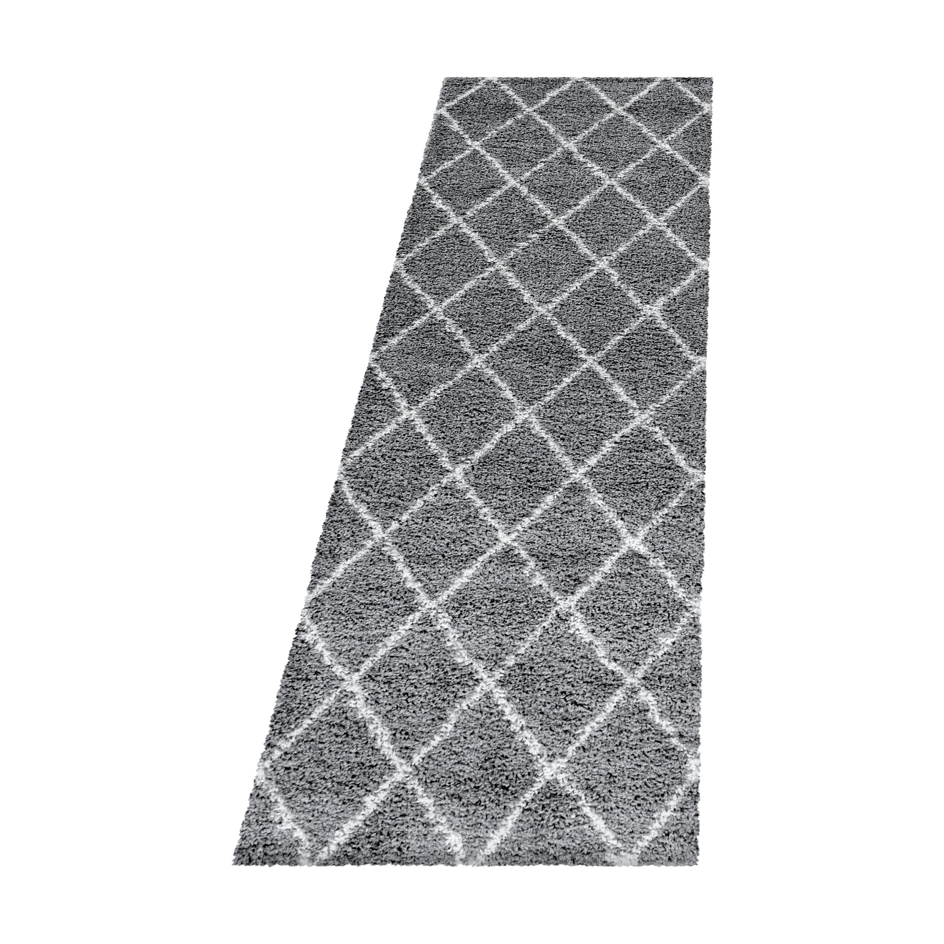 Villa XL Alviro Wohnzimmer-Teppich, Hochflor-Teppich, Shaggy, Rauten Design