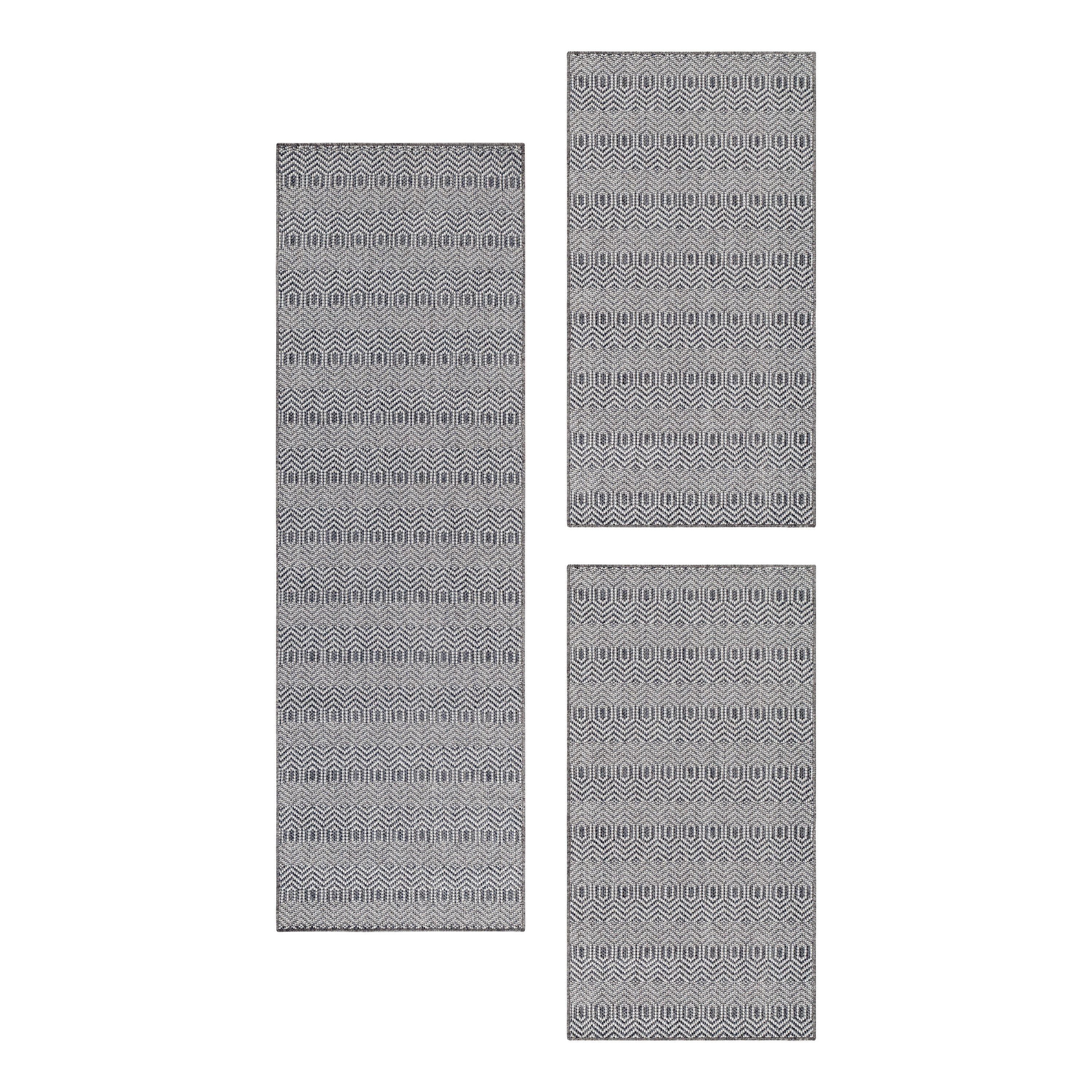 Villa XL Aruaro Bettumrandungs-Teppich Set Grau Boho & Wetterfest