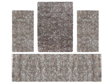 Das Set besteht aus vier abgestimmten Teppichen: ein großer Teppich (160x230 cm) als zentraler Blickfang, zwei mittlere Teppiche (je 80x150 cm) zur Ergänzung in Schlaf- oder Esszimmern, sowie ein Läufer (80x250 cm) für Flur oder Eingangsbereich. So entsteht ein durchgängiges, modernes Wohnkonzept mit Wohlfühlgarantie. Maße: 1 × 160×230 cm, 2 × 80×150 cm, 1 × 80×250 cm.