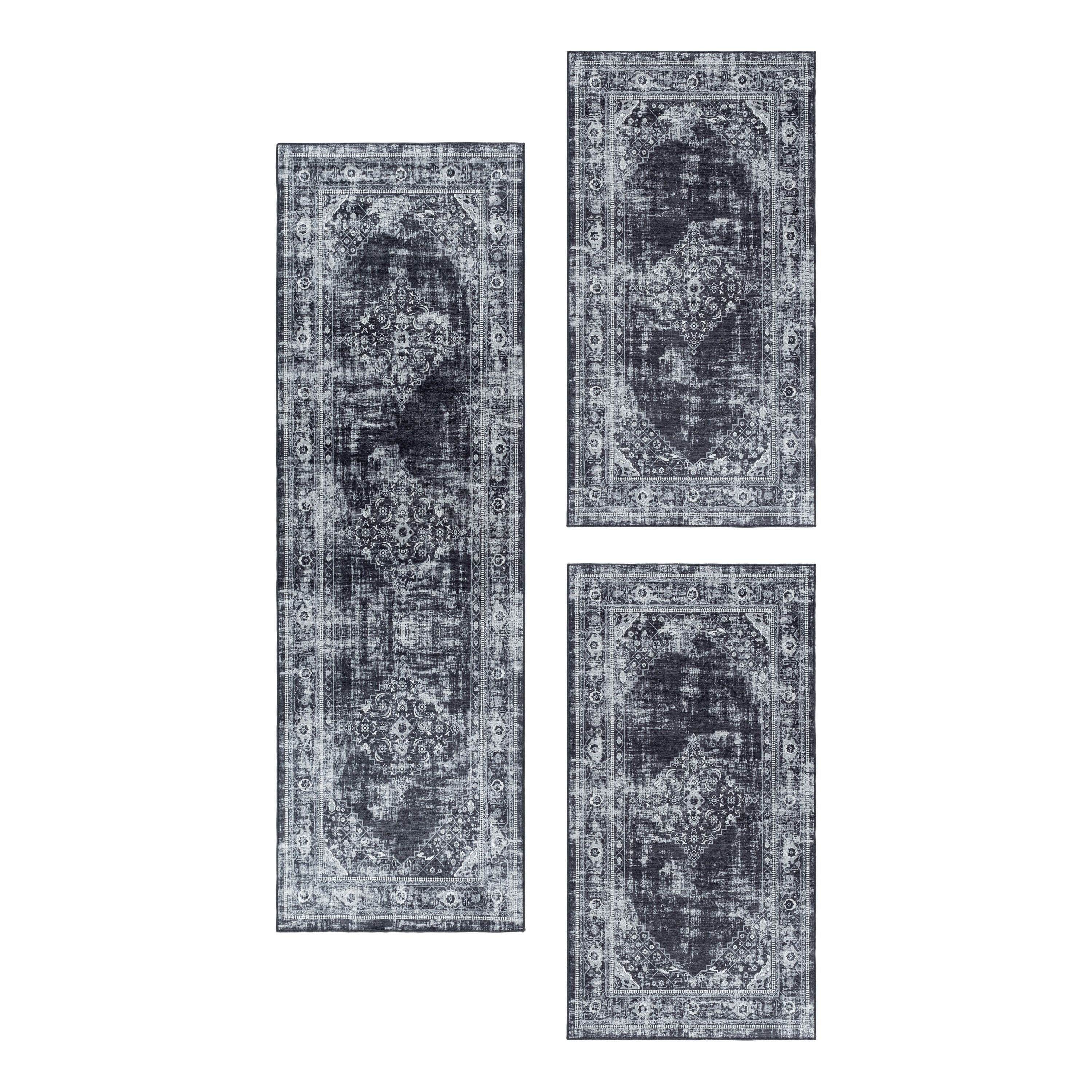 Villa XL Fieico Bettumrandungs-Teppich Set Schwarz Moderner Komfort & Stil