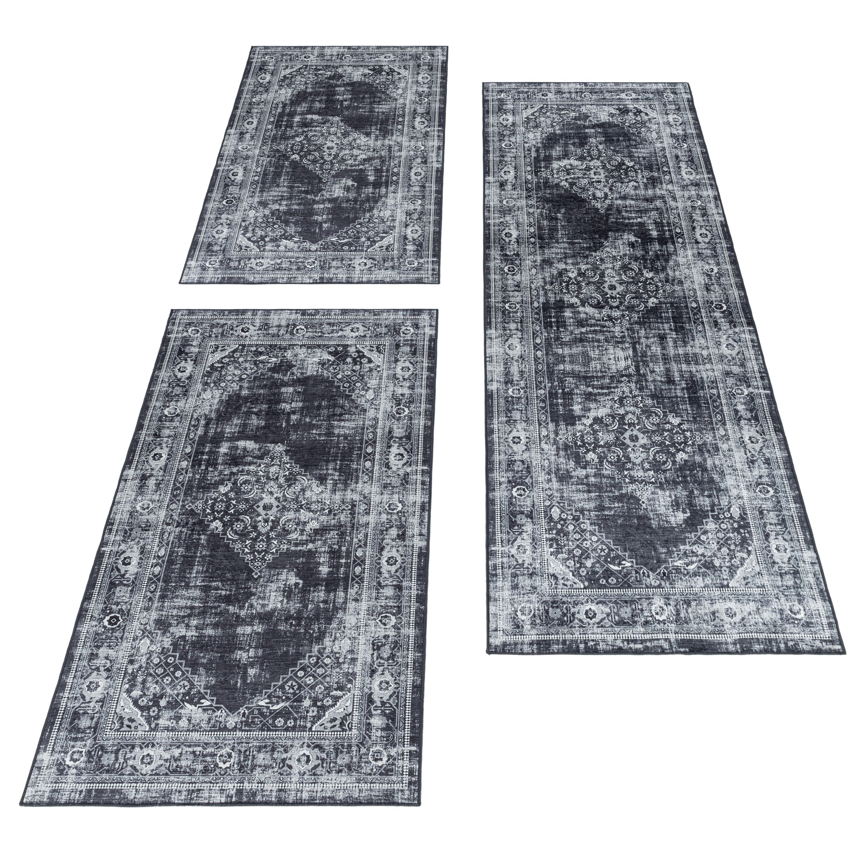 Villa XL Fieico Bettumrandungs-Teppich Set Schwarz