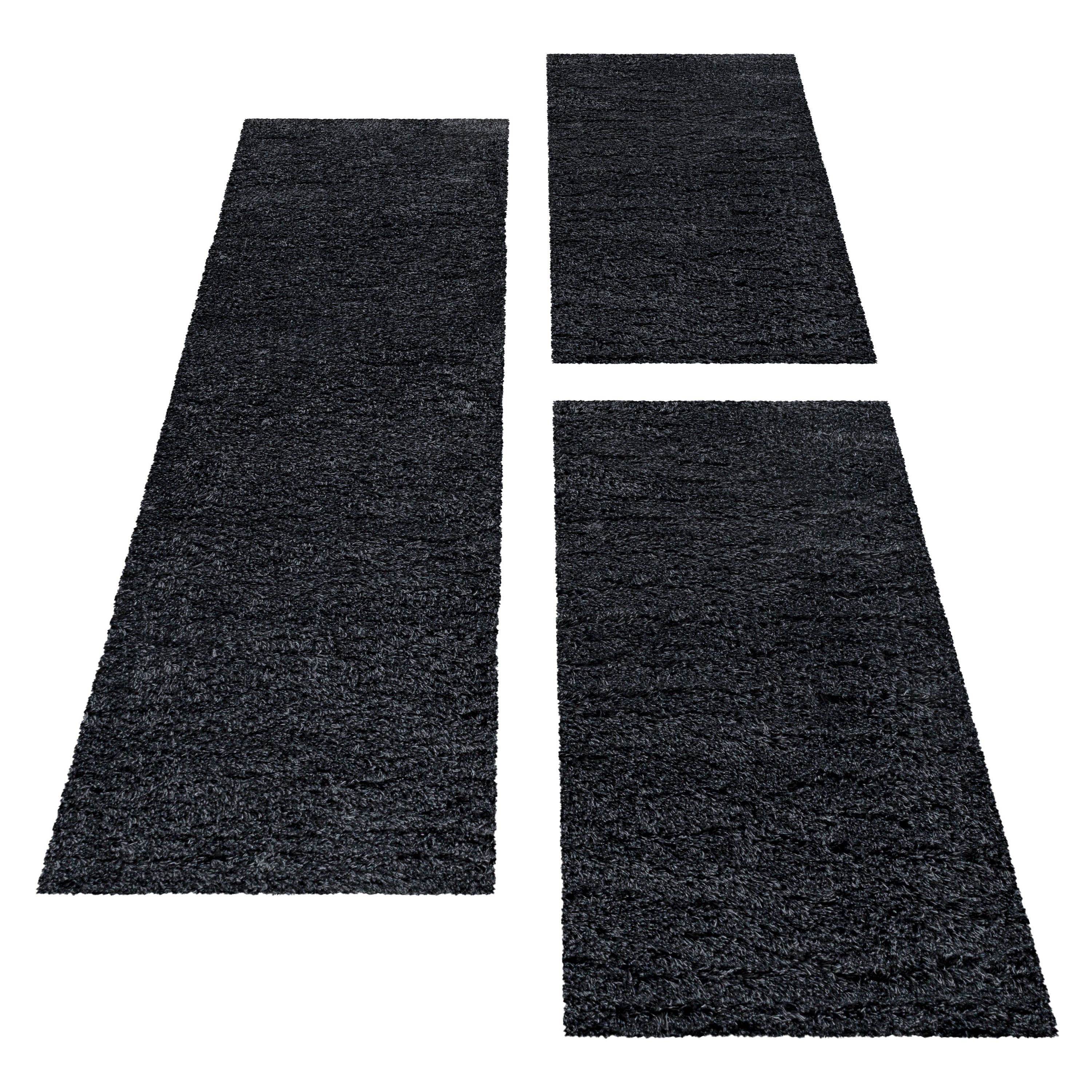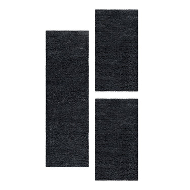 Villa XL Fluina Bettumrandungs-Teppich Set Anthrazit Hochflor & Gemütlich