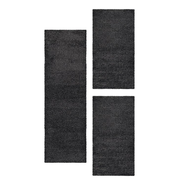 Villa XL Fluina Bettumrandungs-Teppich Set Grau Hochflor & Gemütlich