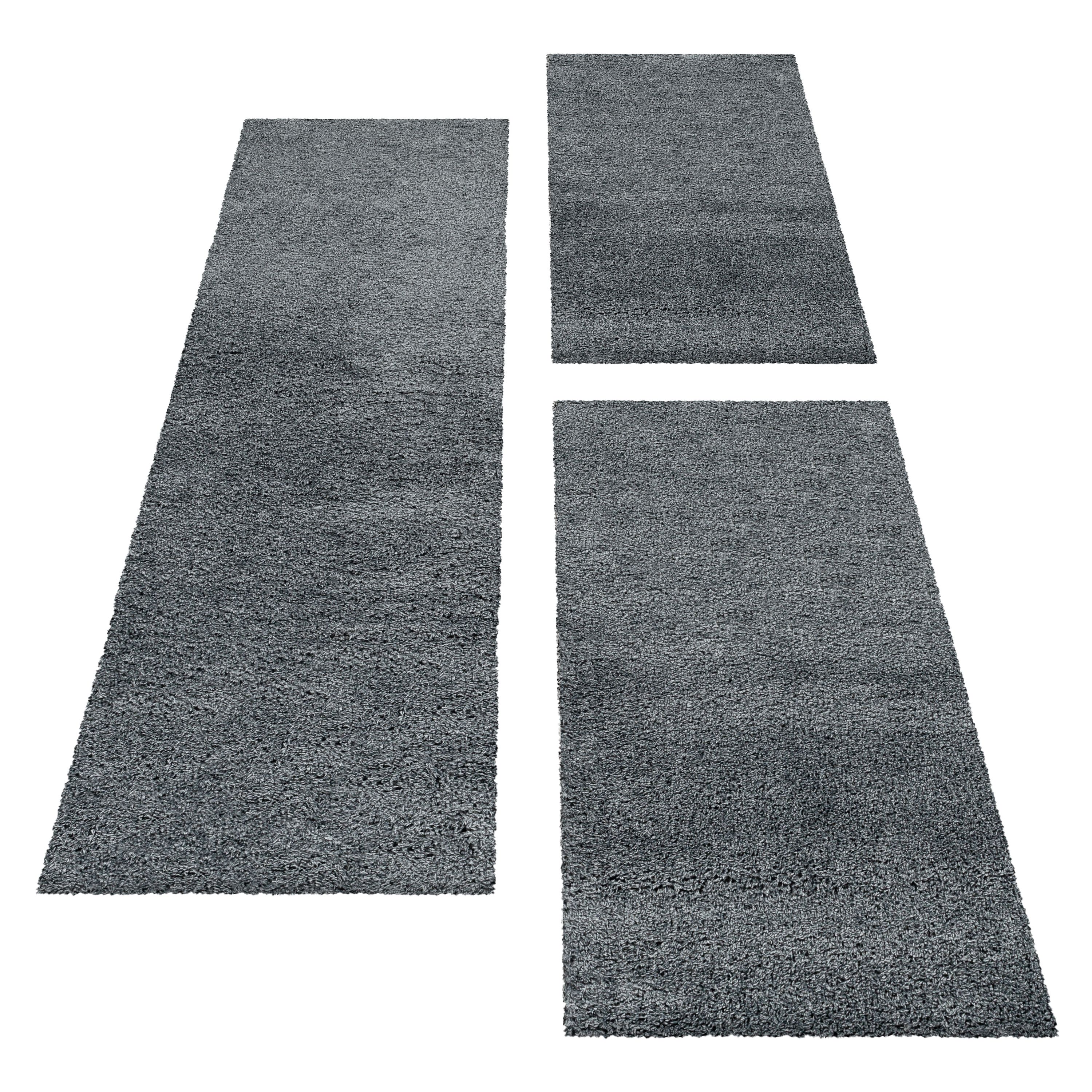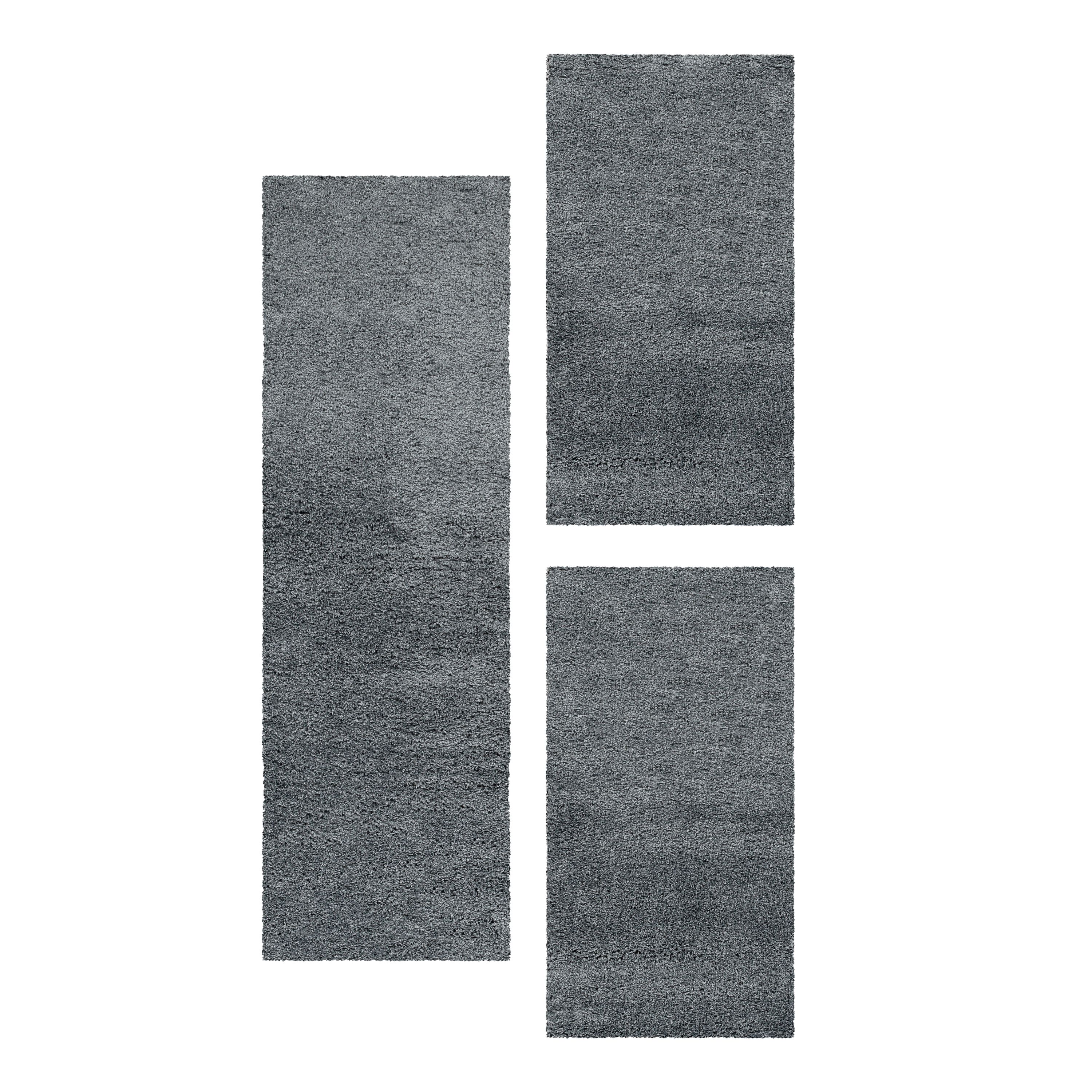 Villa XL Fluina Bettumrandungs-Teppich Set Hellgrau Hochflor & Gemütlich