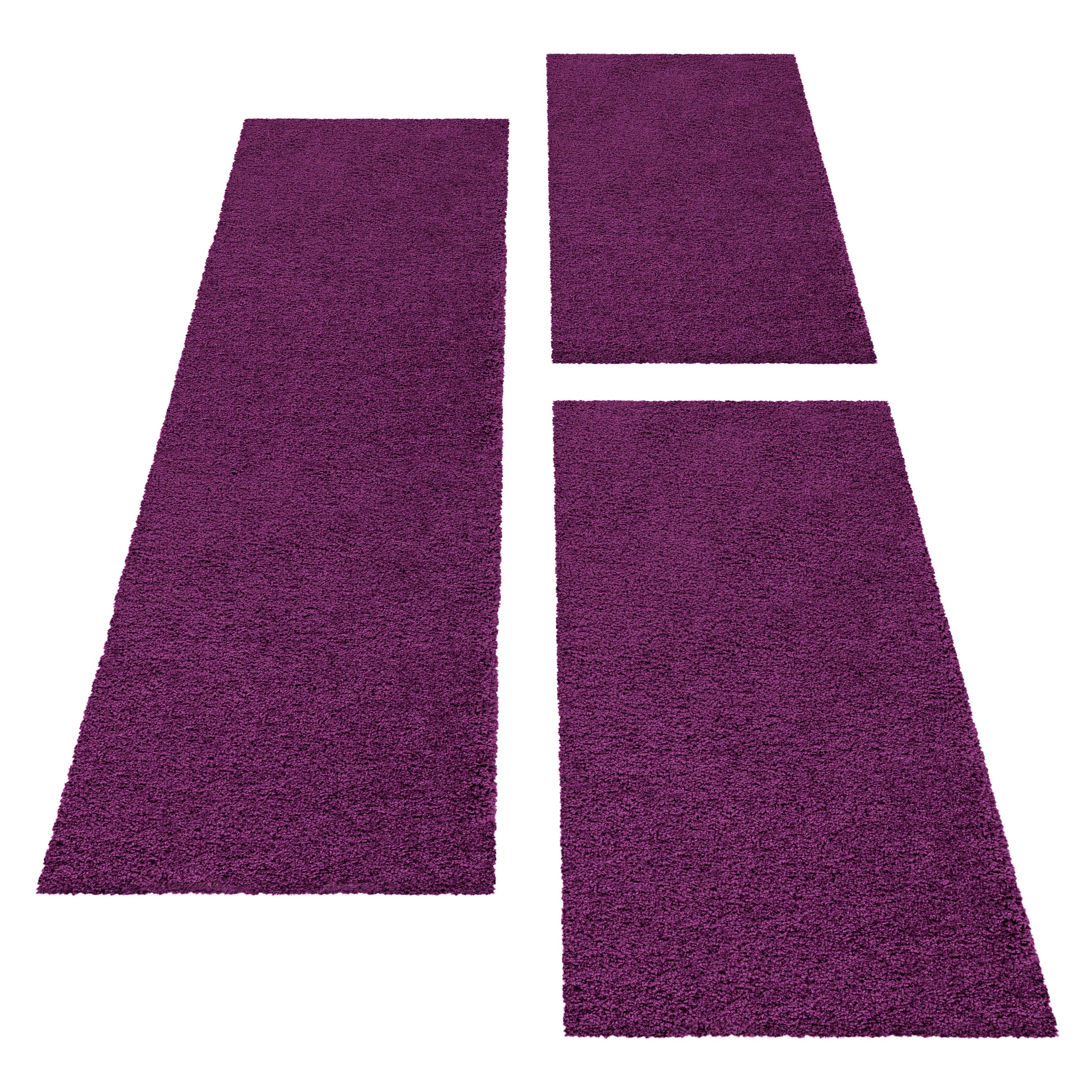 Villa XL Lifiva Bettumrandungs-Teppich Set Lila Hochflor & Elegant