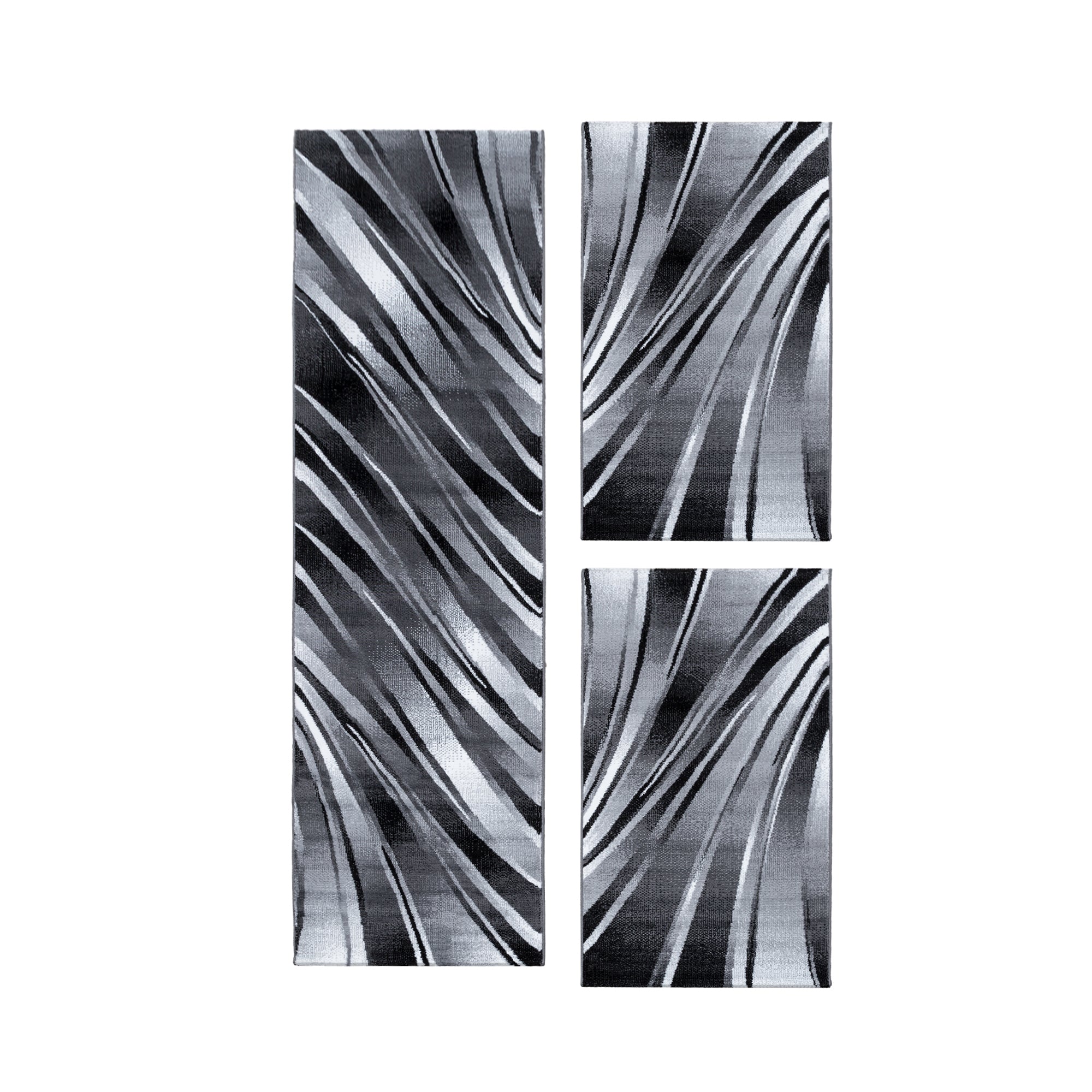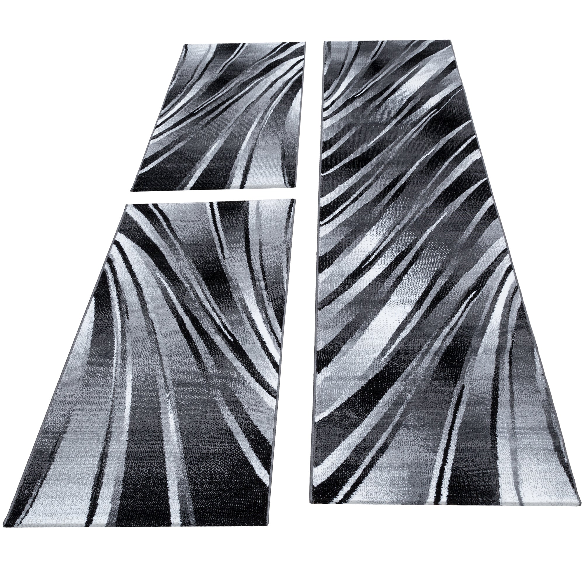 Das Pararo Bettumrandungs-Set in Schwarz bringt modernes Wohngefühl in dein Schlafzimmer.Mit seinem abstrakten Wellen-Design setzt es stilvolle Akzente und harmoniert perfekt mit zeitgenössischen Einrichtungsstilen.Der weiche Kurzflor sorgt für angenehmen Komfort beim Aufstehen, während die rutschfeste Unterseite Stabilität bietet.