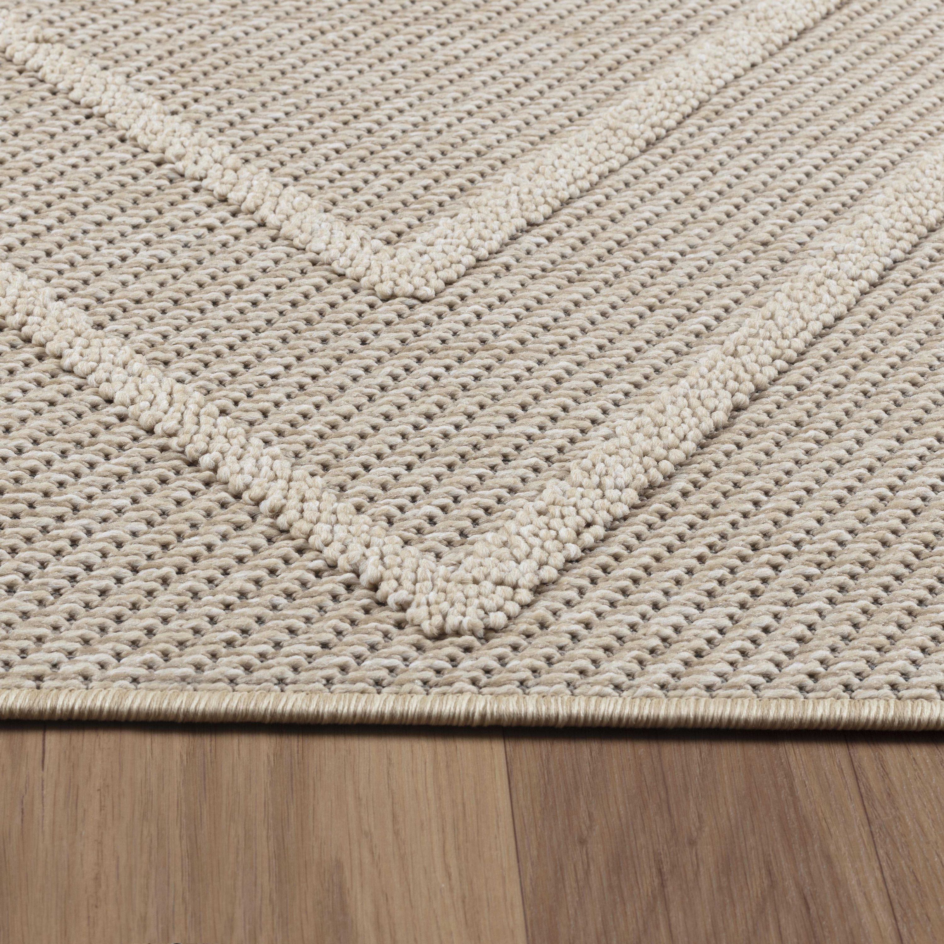 Der In & Outdoor Teppich Pativa in natürlichem Beige kombiniert ein elegantes Boho-Design mit außergewöhnlicher Funktionalität. Gefertigt aus strapazierfähigem Polypropylen und maschinell gewebt, bietet der Teppich eine rutschfeste, pflegeleichte Oberfläche, die sowohl für den Innen- als auch für den Außenbereich ideal geeignet ist. Perfekt für die Küche, den Balkon, die Terrasse oder den Garten, schützt dieser Teppich den Boden und verleiht jedem Raum einen modernen, skandinavischen Charme. Reinigung erfolgt bequem per Handwäsche.