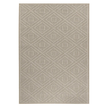 Der In & Outdoor Teppich Pativa in modernem Beige bringt mit seinem stilvollen Rauten-Design Frische und Funktionalität in Ihre Küche, Balkon, Terrasse oder den Garten. Aus strapazierfähigem Polypropylen gefertigt und maschinell gewebt, ist der Teppich besonders rutschfest und pflegeleicht. Er schützt den Boden und verleiht Ihrem Raum eine elegante, skandinavische Atmosphäre. Der Teppich ist für den Innen- und Außenbereich geeignet, ideal für den Küchenbereich oder als stilvolle Ergänzung für Balkon und Terrasse. Reinigung erfolgt bequem per Handwäsche.